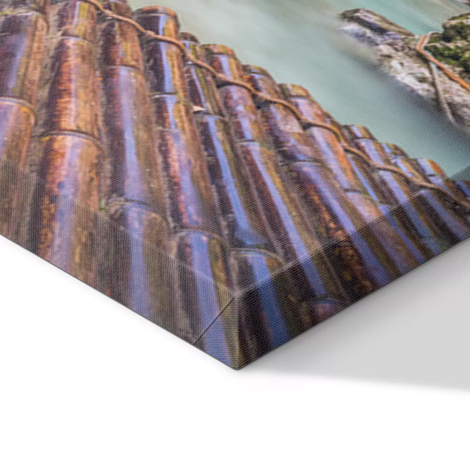 De print wordt aangebracht op hoogwaardig canvas dat op een schildersweefgetouw (spieraam) wordt gespannen. Omdat de print de zijranden bedekt, hoeft het ontwerp niet met een extra kader te worden omlijst. Wij raden ook composities aan die uit meerdere foto's bestaan en zo een coherente compositie vormen.