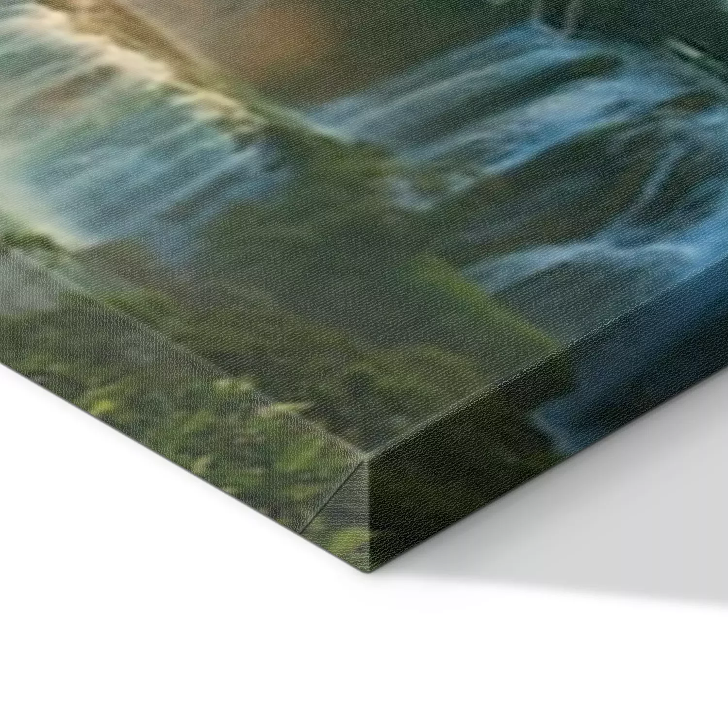 De print wordt aangebracht op hoogwaardig canvas dat op een schildersweefgetouw (spieraam) wordt gespannen. Omdat de print de zijranden bedekt, hoeft het ontwerp niet met een extra kader te worden omlijst. Wij raden ook composities aan die uit meerdere foto's bestaan en zo een coherente compositie vormen.