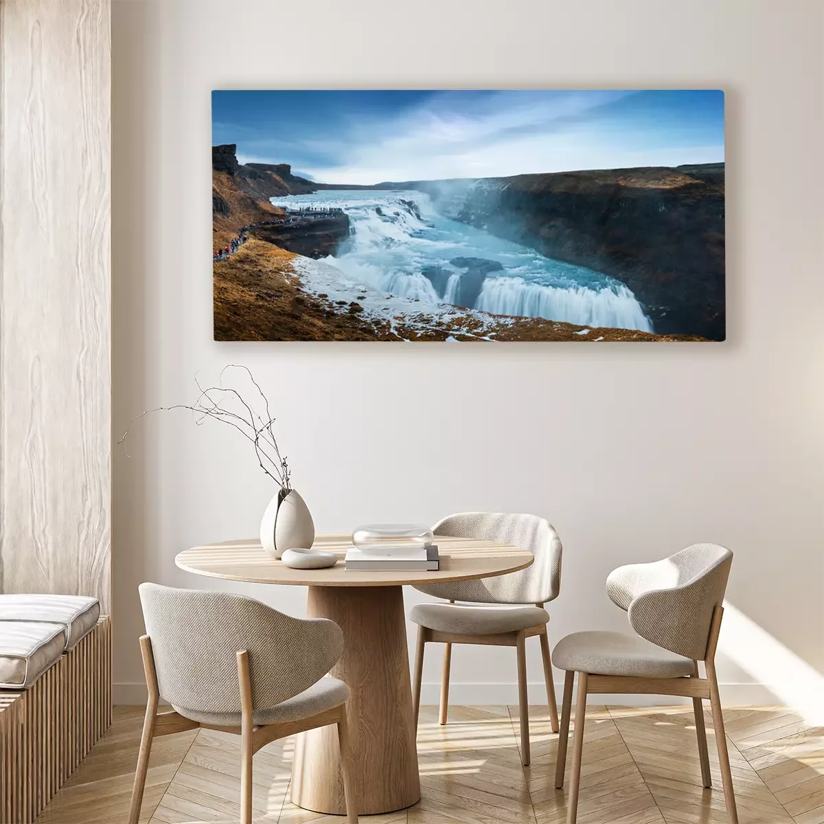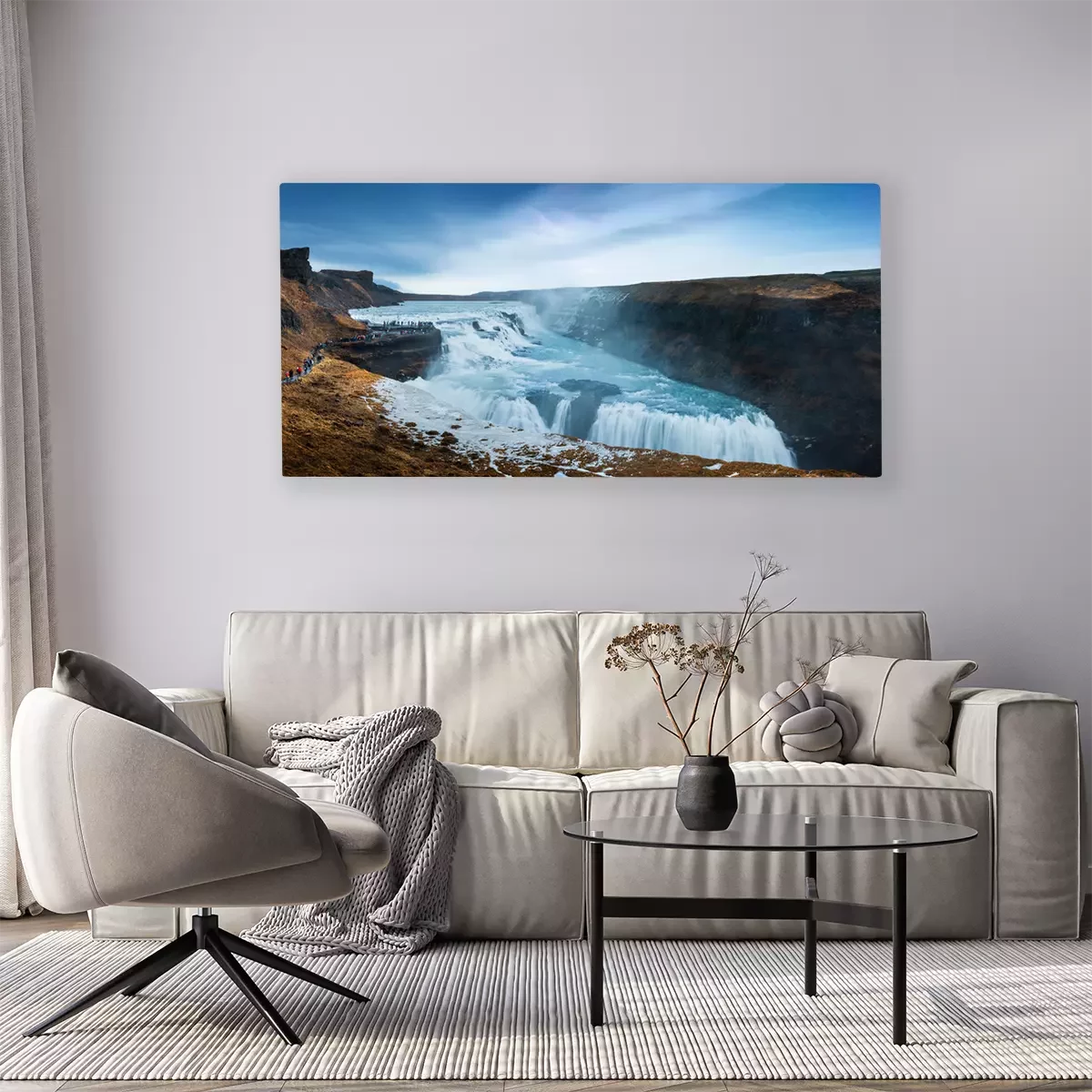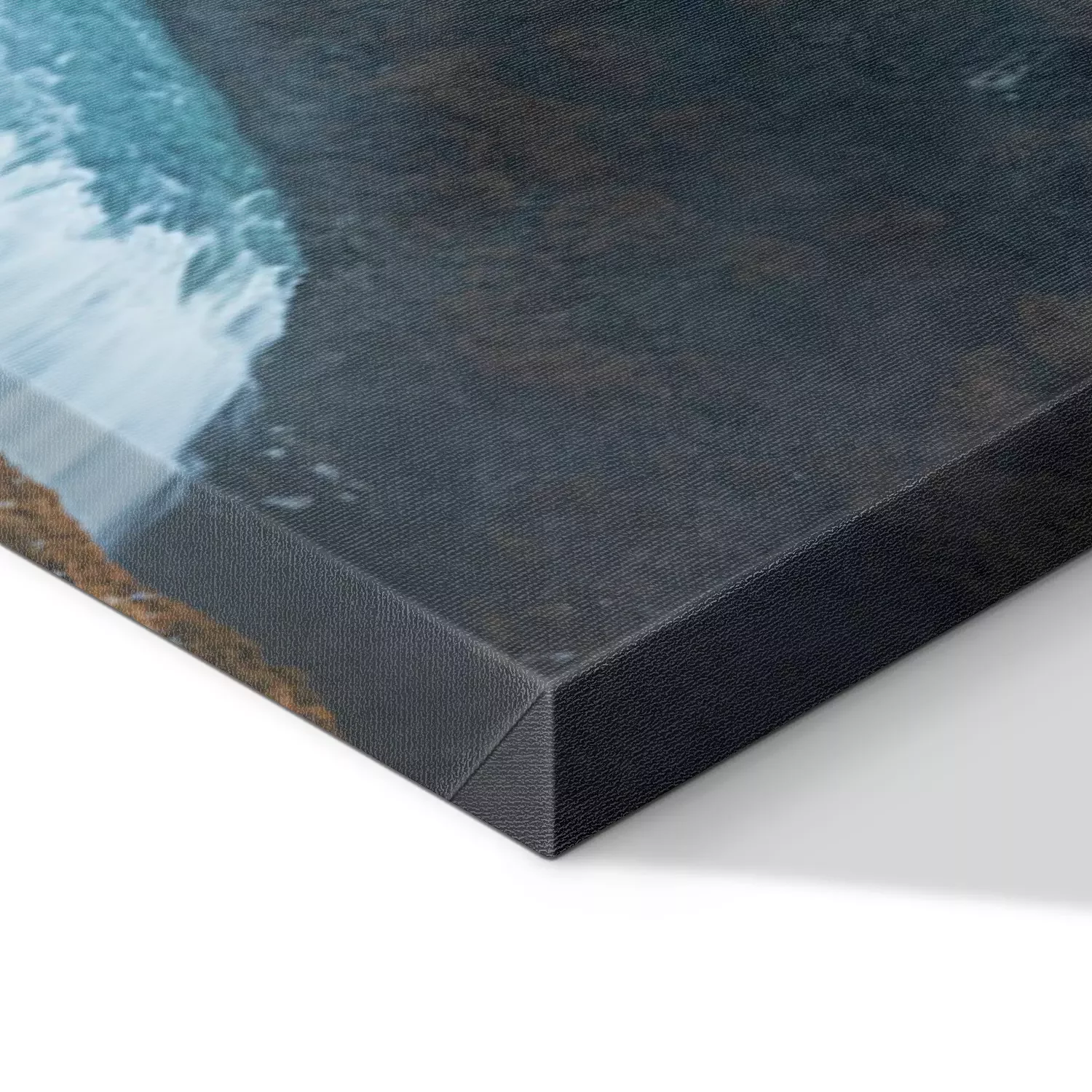 De print wordt aangebracht op hoogwaardig canvas dat op een schildersweefgetouw (spieraam) wordt gespannen. Omdat de print de zijranden bedekt, hoeft het ontwerp niet met een extra kader te worden omlijst. Wij raden ook composities aan die uit meerdere foto's bestaan en zo een coherente compositie vormen.