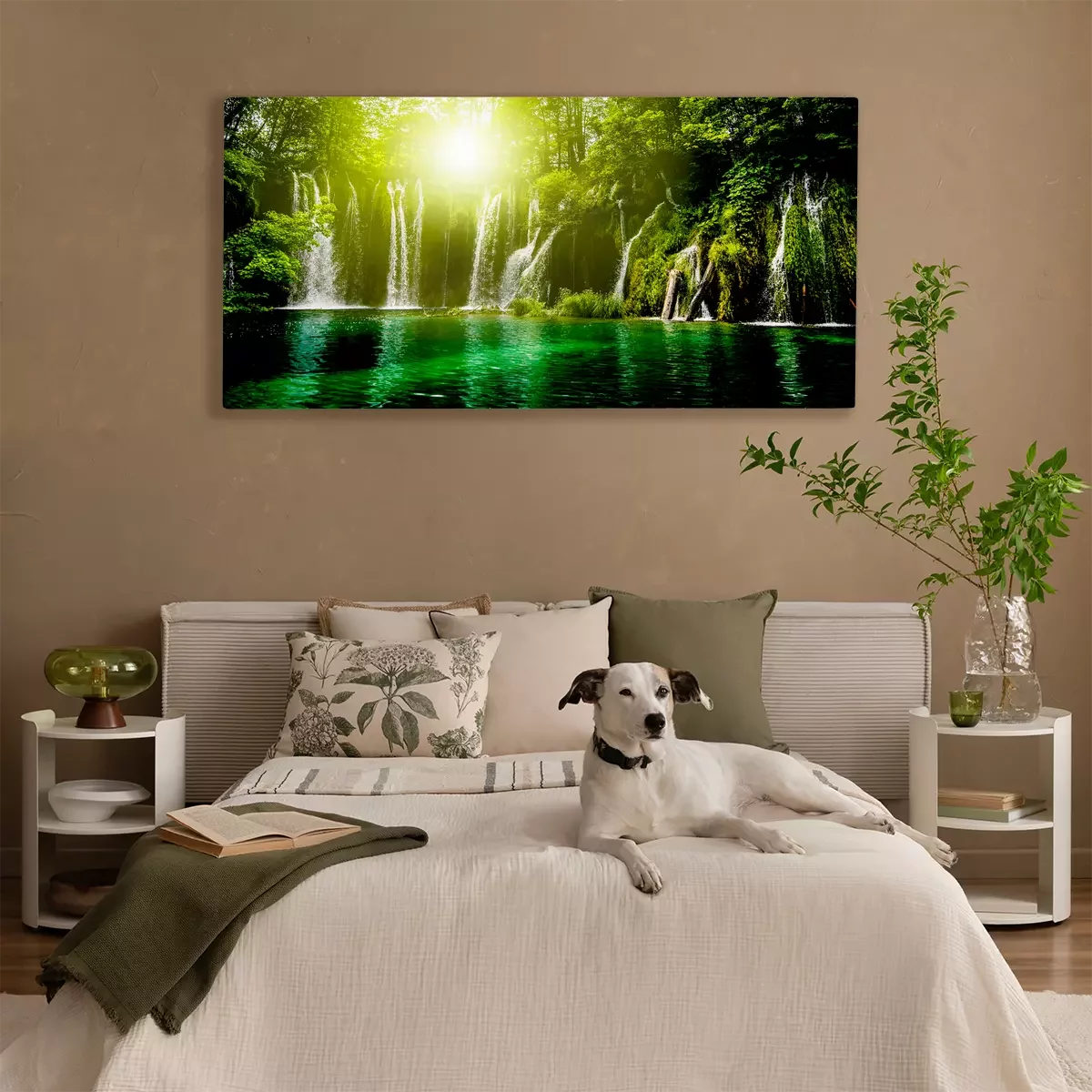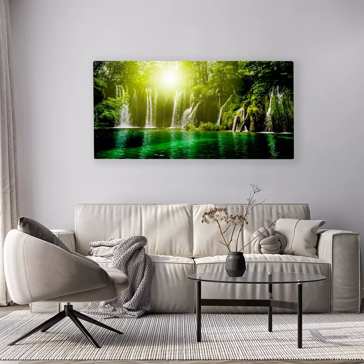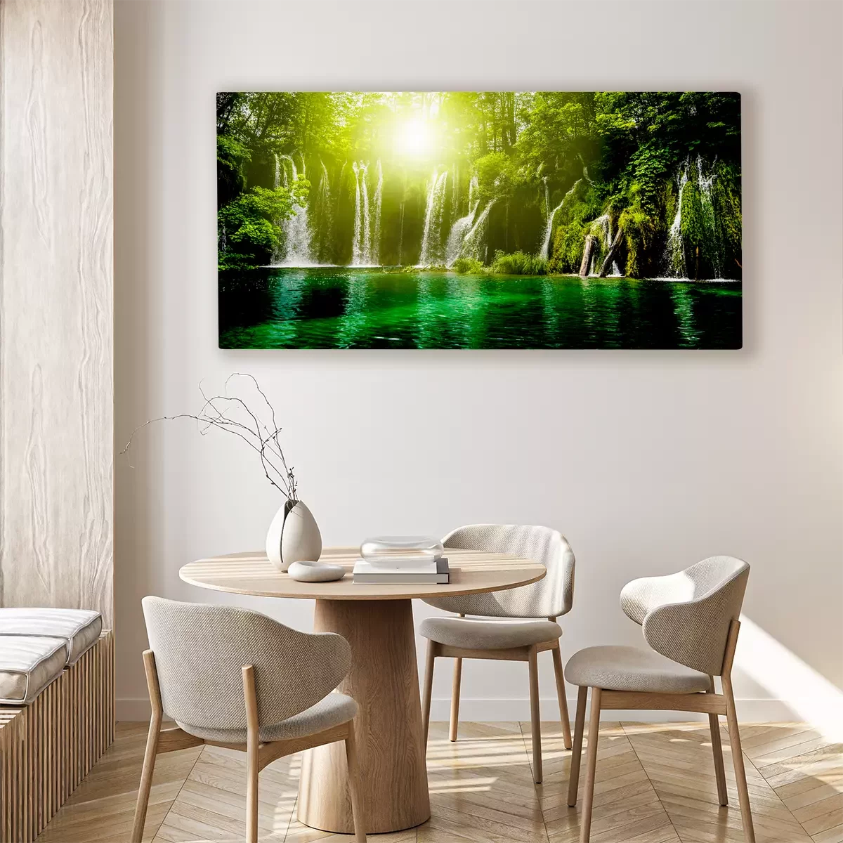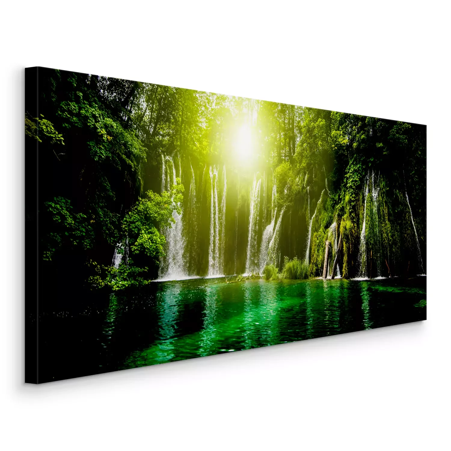 Waterval met zon en smaragdgroen water