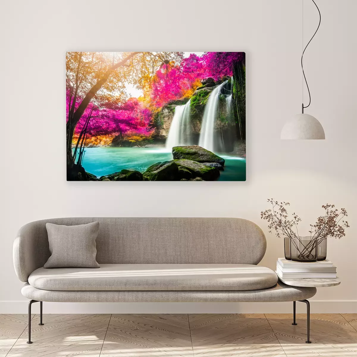 De print wordt aangebracht op hoogwaardig canvas dat op een schildersweefgetouw (spieraam) wordt gespannen. Omdat de print de zijranden bedekt, hoeft het ontwerp niet met een extra kader te worden omlijst. Wij raden ook composities aan die uit meerdere foto's bestaan en zo een coherente compositie vormen.
