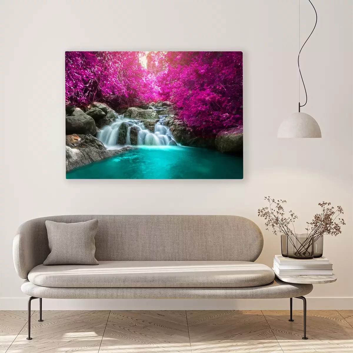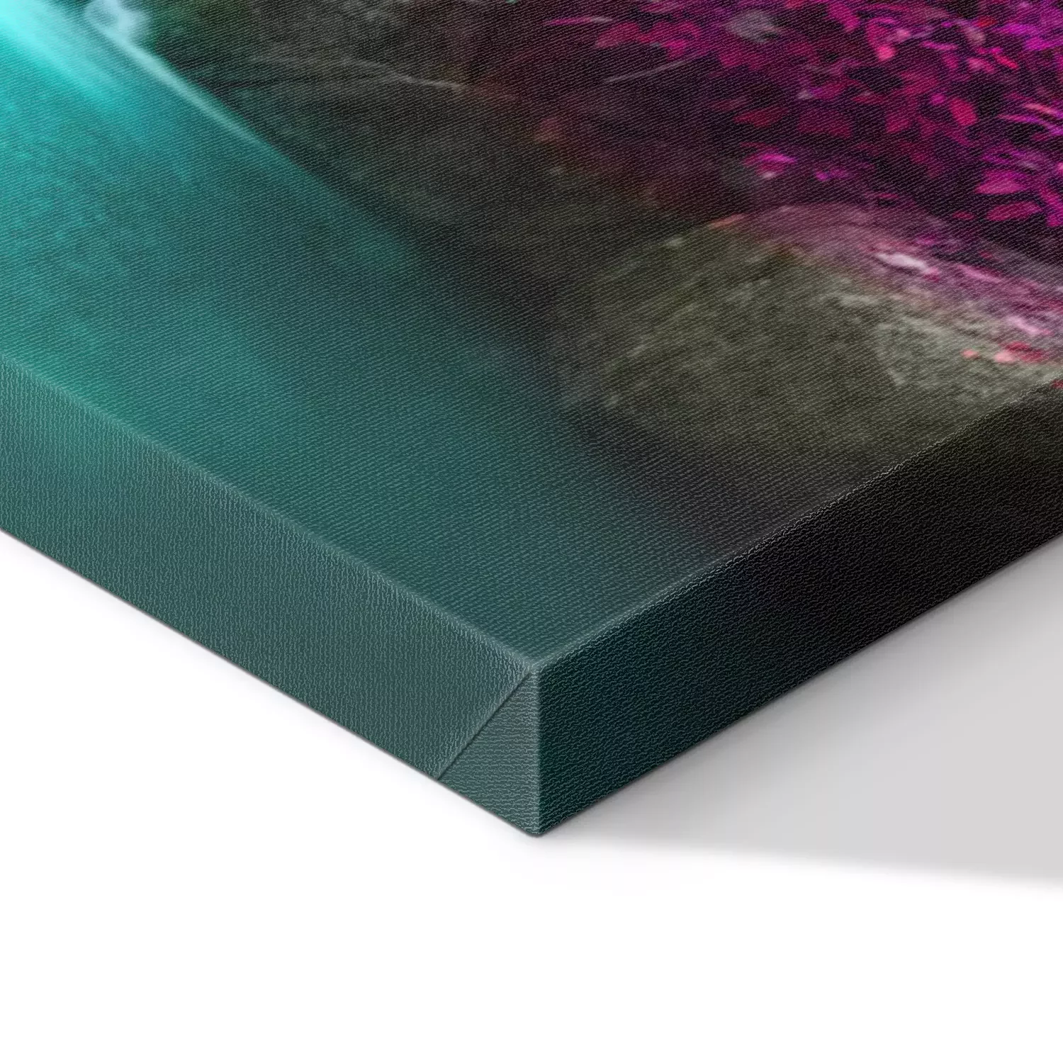 De print wordt aangebracht op hoogwaardig canvas dat op een schildersweefgetouw (spieraam) wordt gespannen. Omdat de print de zijranden bedekt, hoeft het ontwerp niet met een extra kader te worden omlijst. Wij raden ook composities aan die uit meerdere foto's bestaan en zo een coherente compositie vormen.