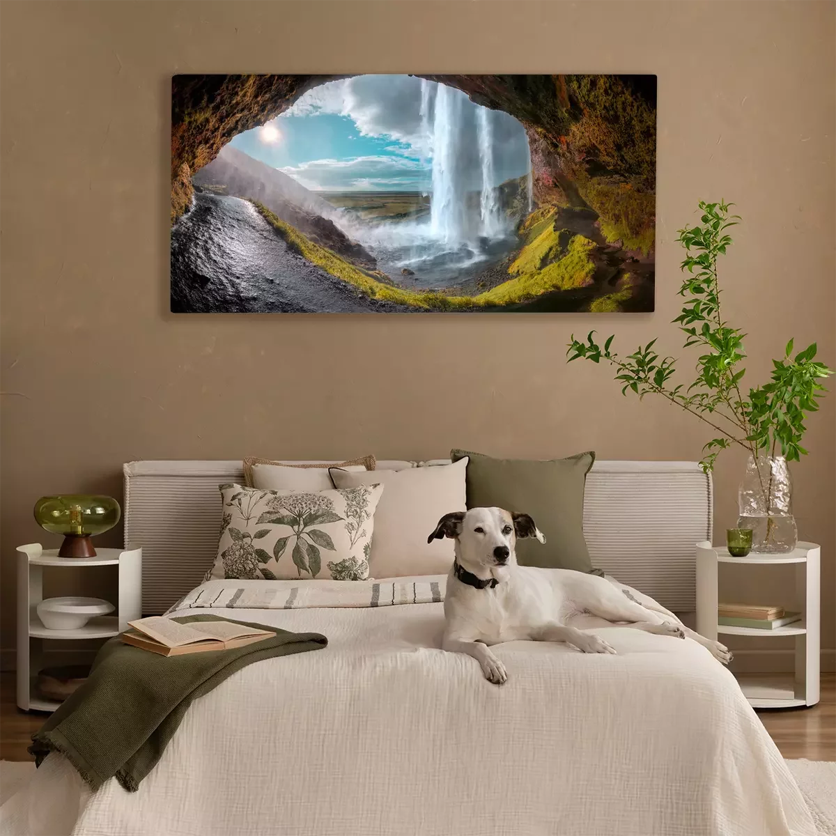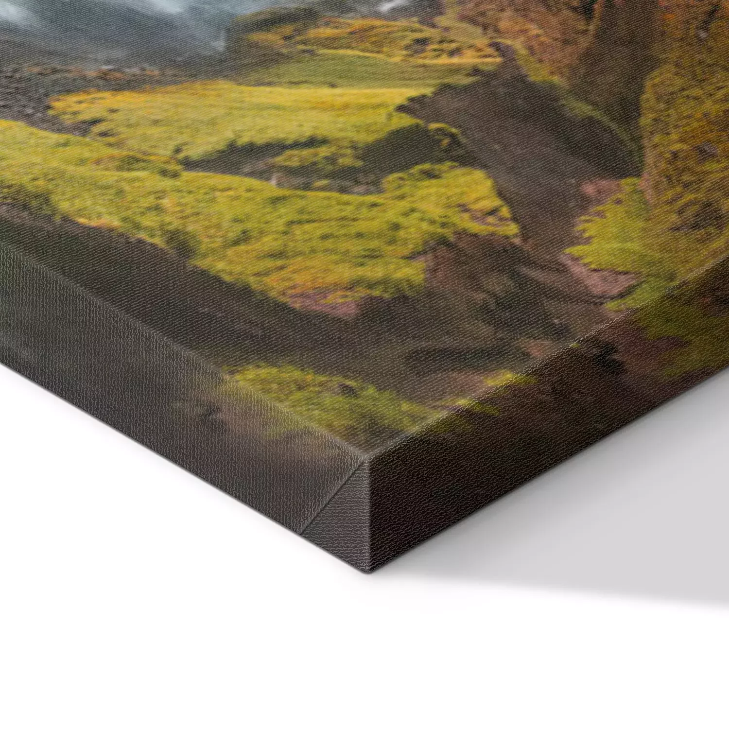 De print wordt aangebracht op hoogwaardig canvas dat op een schildersweefgetouw (spieraam) wordt gespannen. Omdat de print de zijranden bedekt, hoeft het ontwerp niet met een extra kader te worden omlijst. Wij raden ook composities aan die uit meerdere foto's bestaan en zo een coherente compositie vormen.