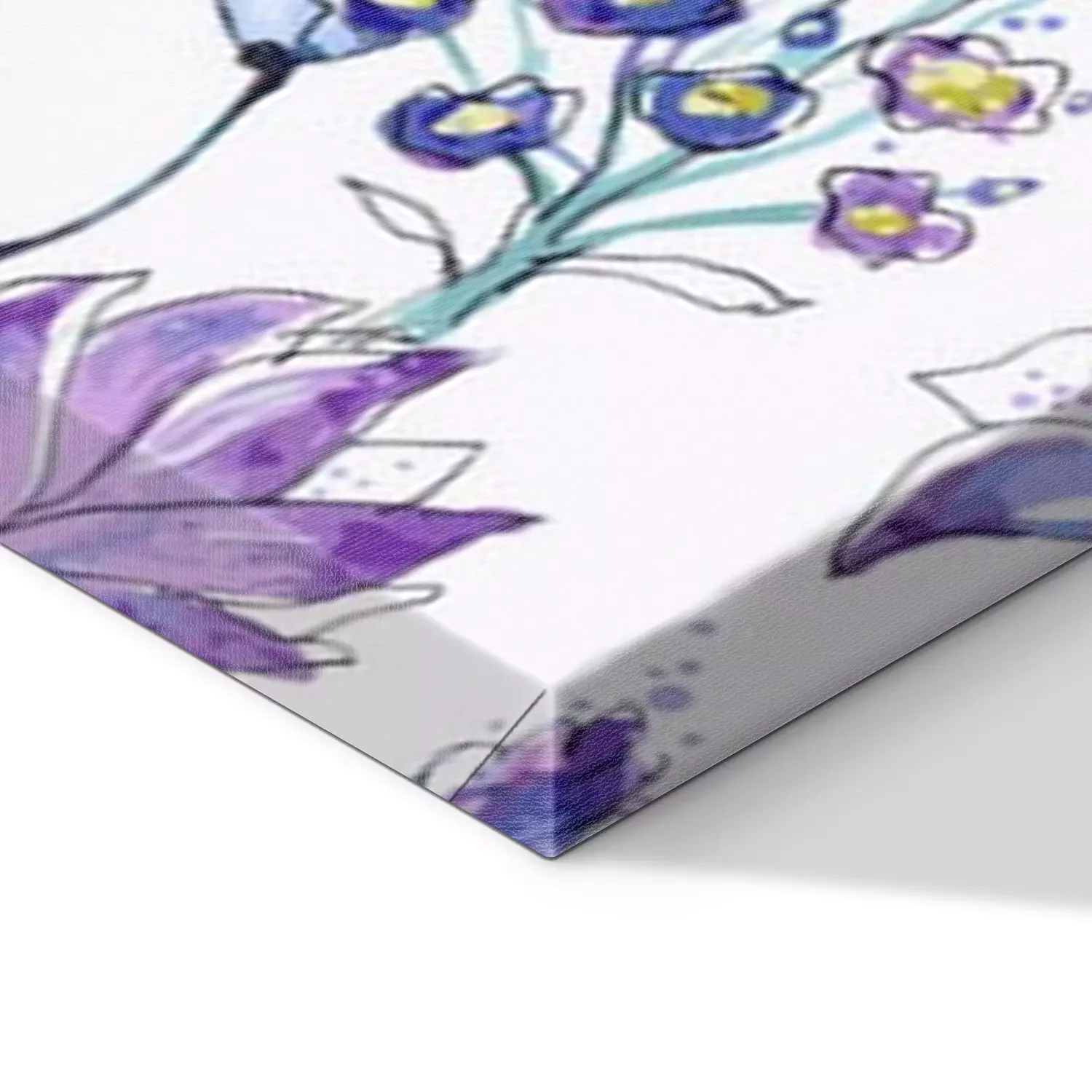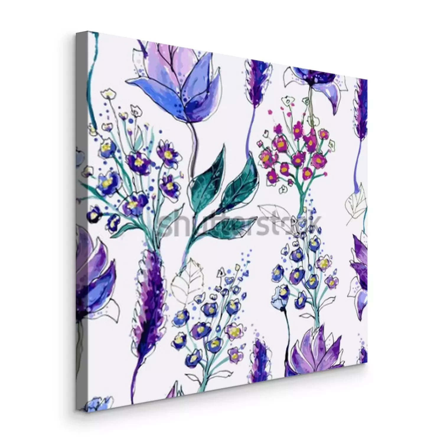 Canvas Waterverf bloemen naadloos patroon met violette wilde bloemen. Handgeschilderde bloemen achtergrond. Digitaal papier.