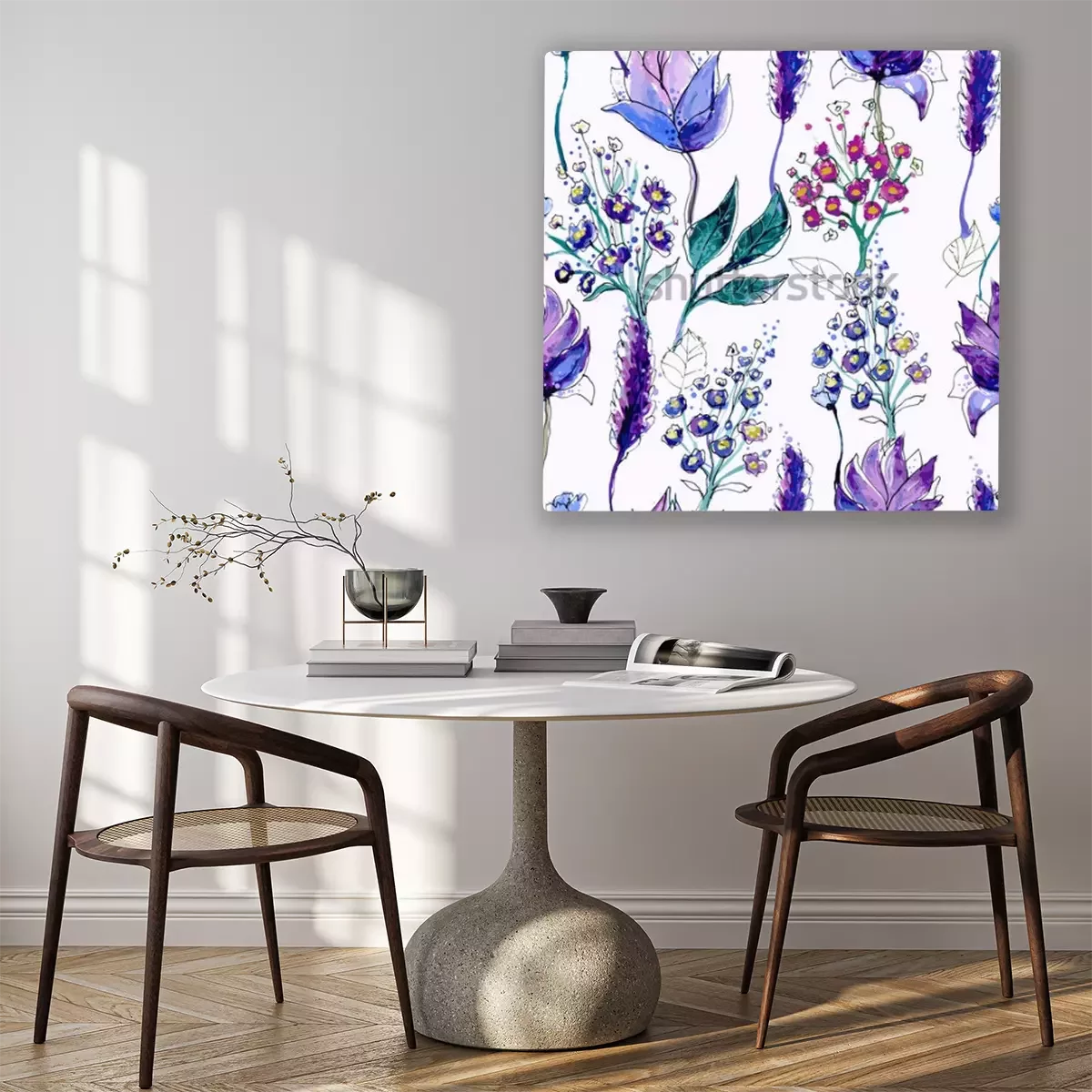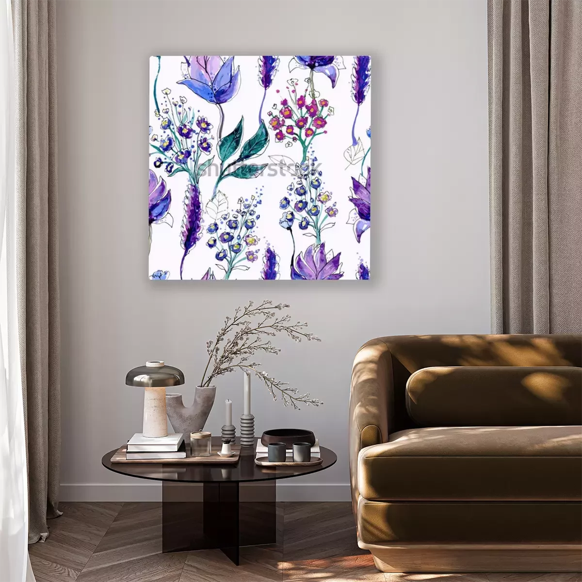 Canvas: Waterverf bloemen naadloos patroon met violette wilde bloemen. Handgeschilderde bloemen achtergrond. Digitaal papier.