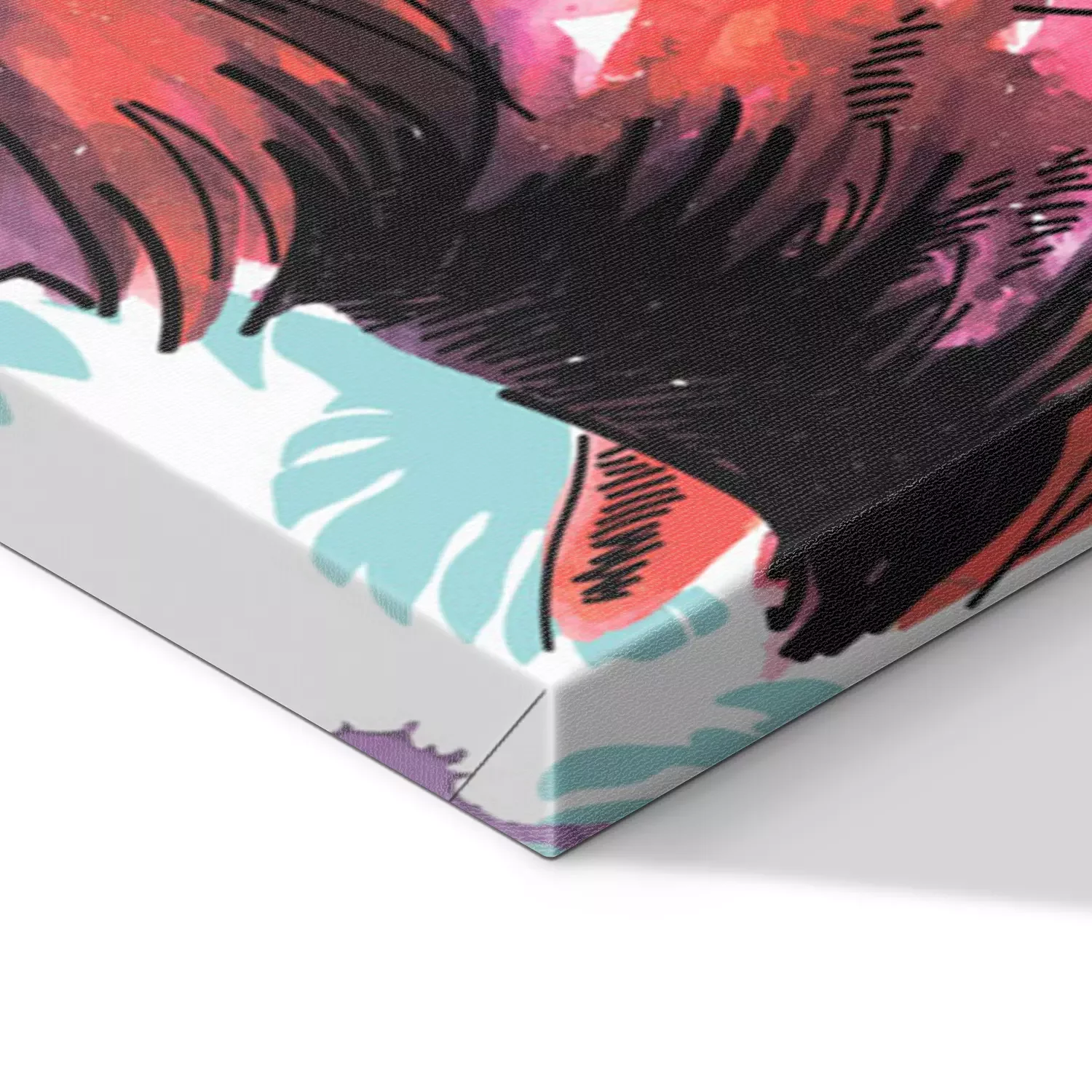 De print wordt aangebracht op hoogwaardig canvas dat op een schildersweefgetouw (spieraam) wordt gespannen. Omdat de print de zijranden bedekt, hoeft het ontwerp niet met een extra kader te worden omlijst. Wij raden ook composities aan die uit meerdere foto's bestaan en zo een coherente compositie vormen.