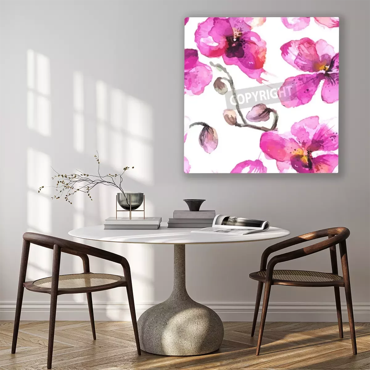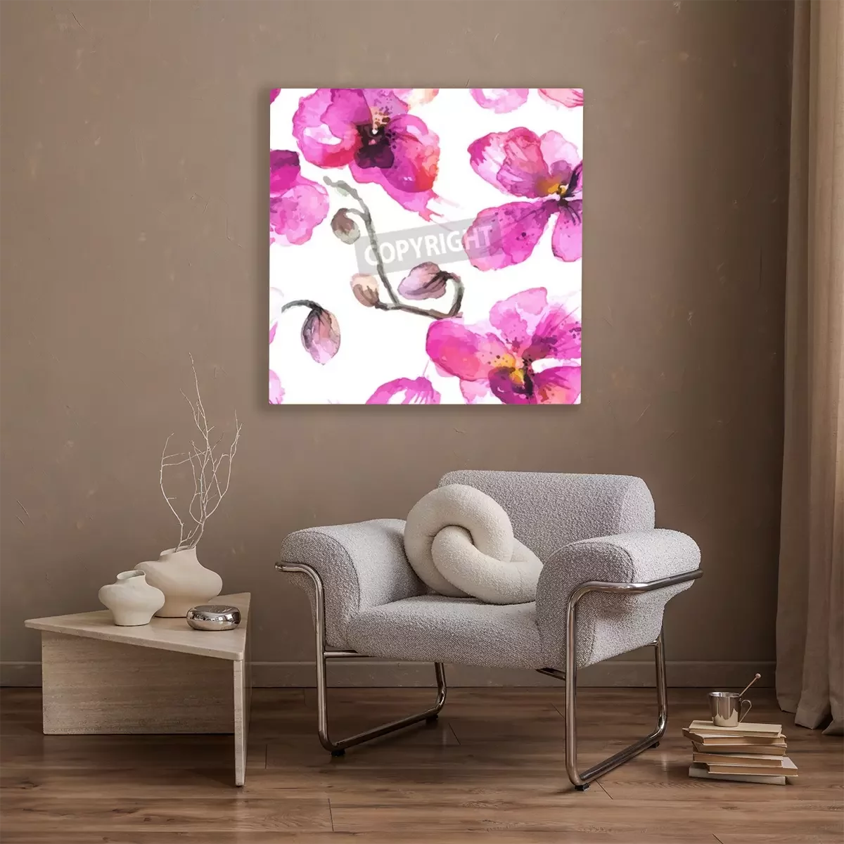 Canvas: Waterverf het geïllustreerde orchidee bloemen naadloze achtergrond