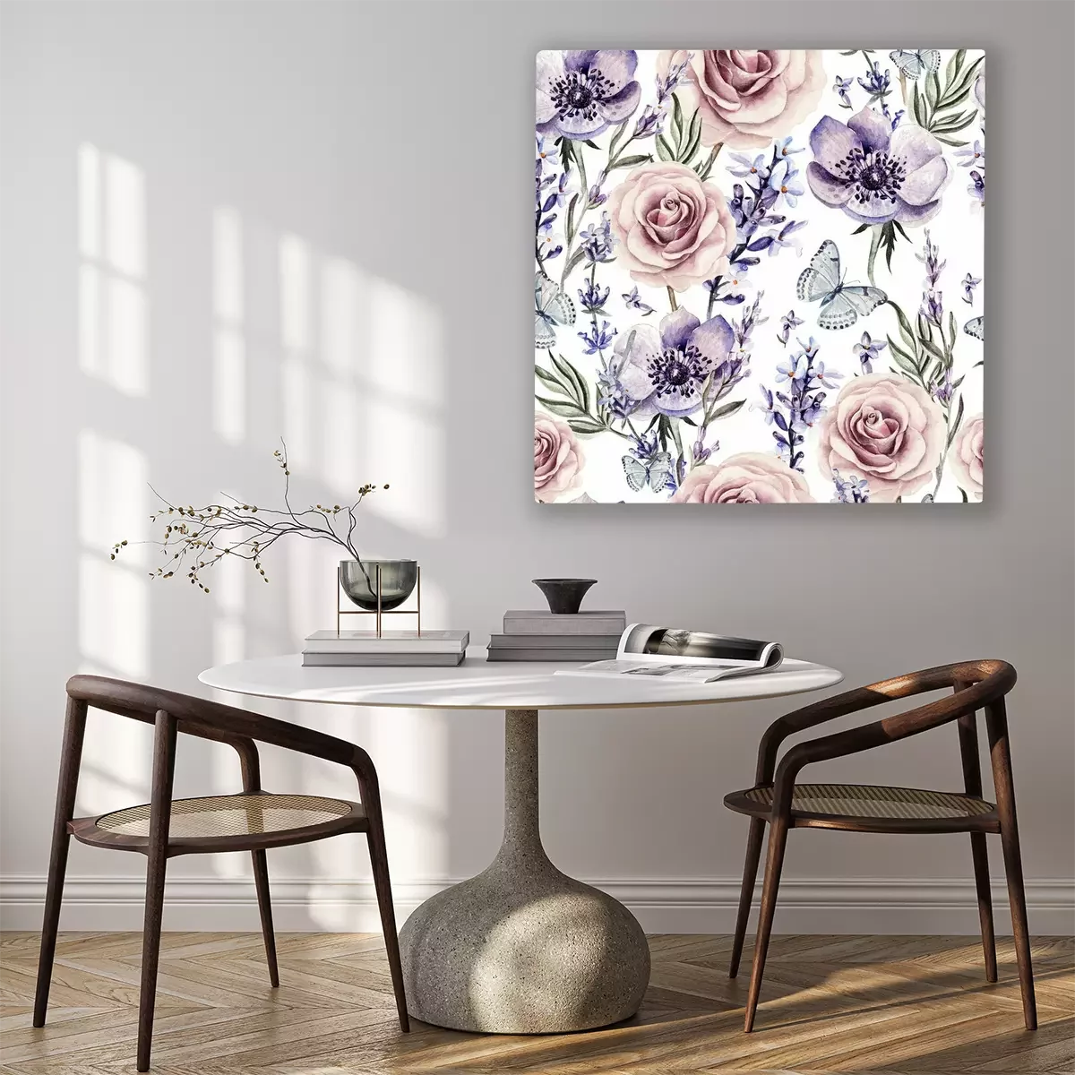 Canvas: Waterverf het patroon met de kleuren van lavendel