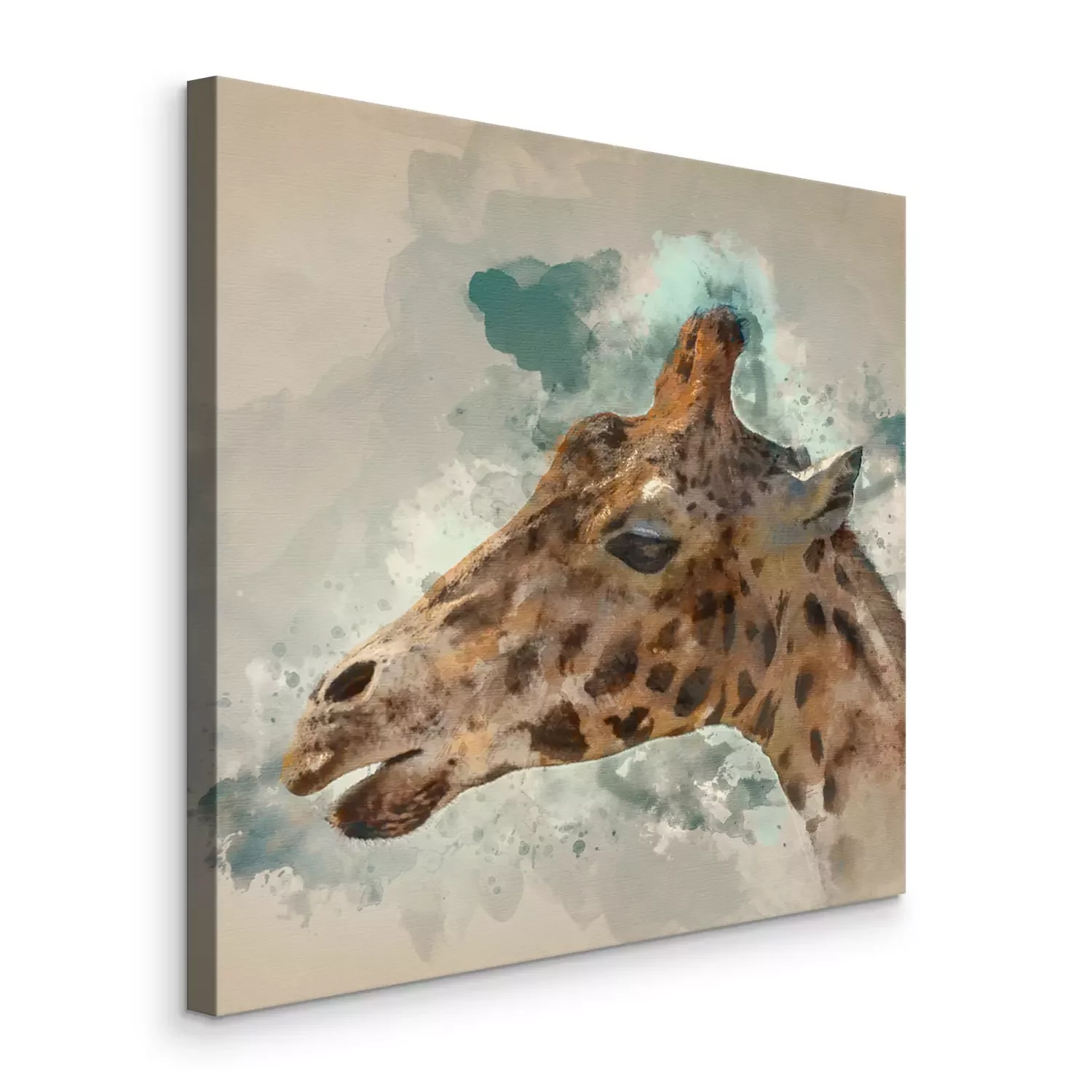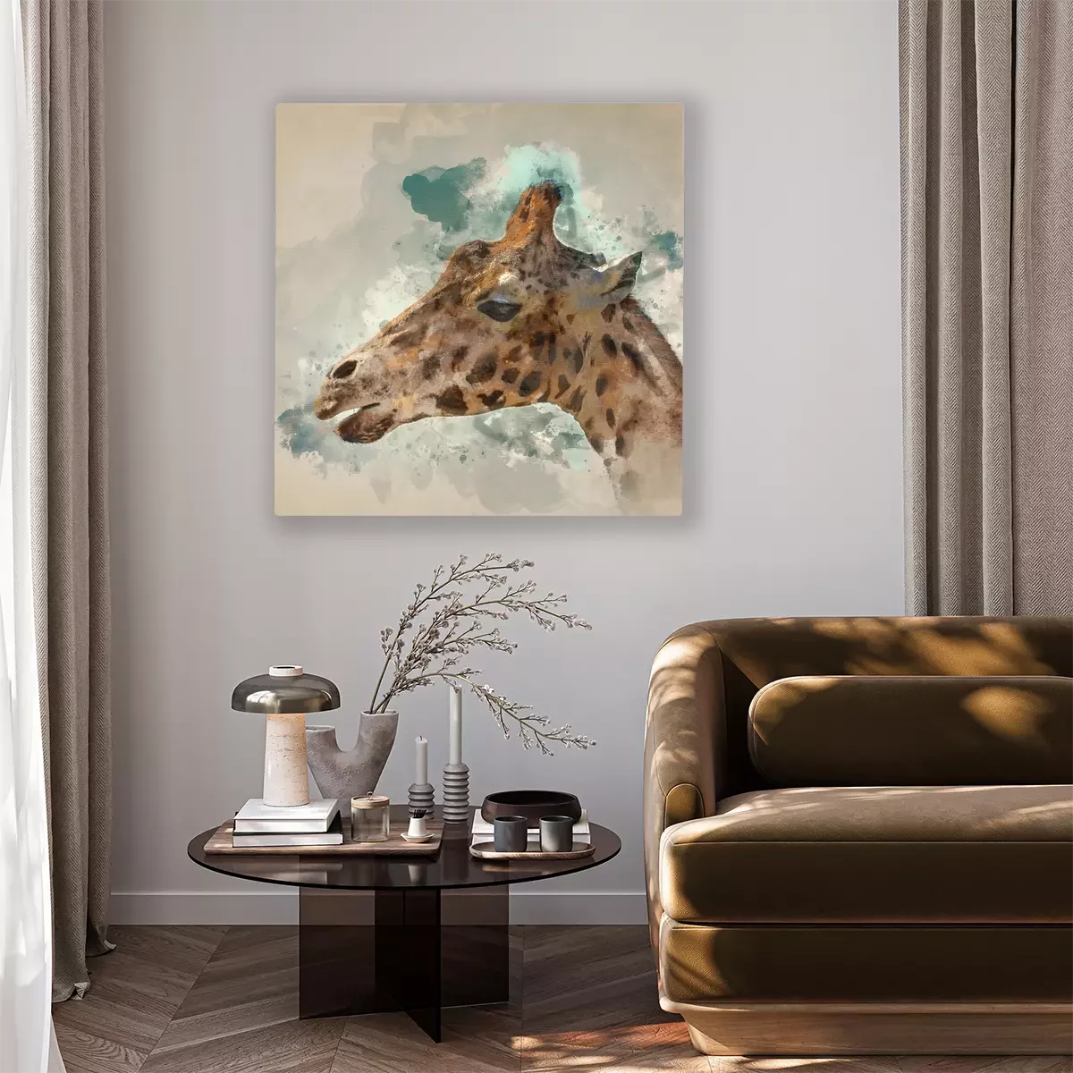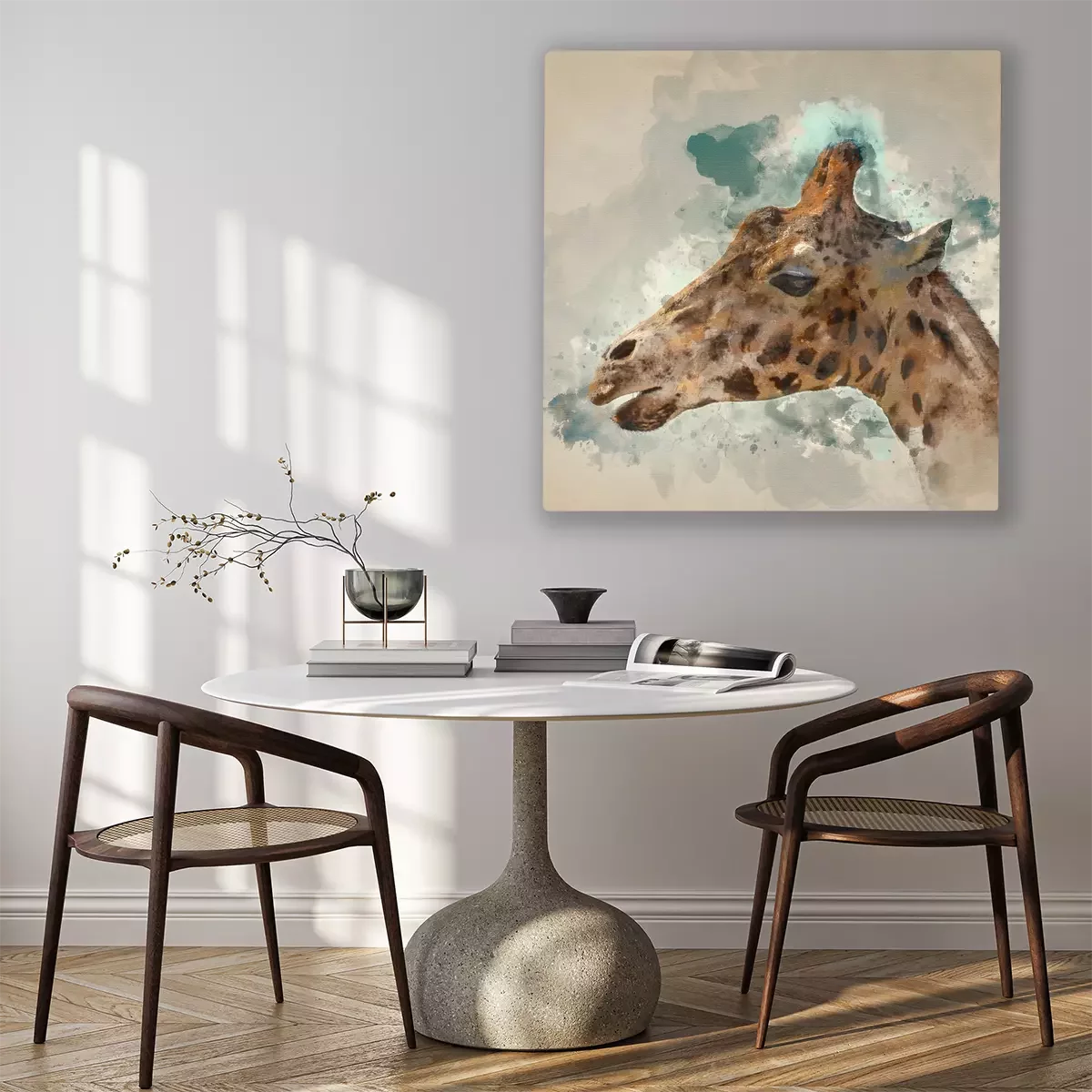 Canvas: Waterverfgiraf op een blauwe achtergrond