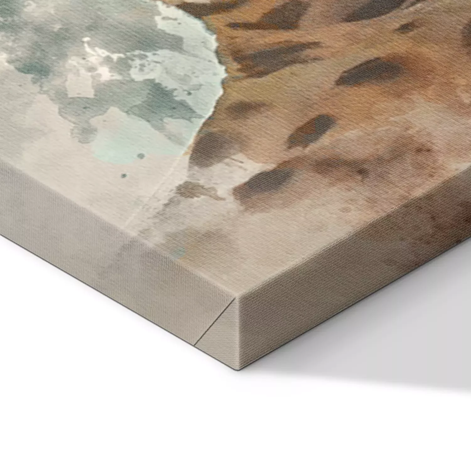 De print wordt aangebracht op hoogwaardig canvas dat op een schildersweefgetouw (spieraam) wordt gespannen. Omdat de print de zijranden bedekt, hoeft het ontwerp niet met een extra kader te worden omlijst. Wij raden ook composities aan die uit meerdere foto's bestaan en zo een coherente compositie vormen.