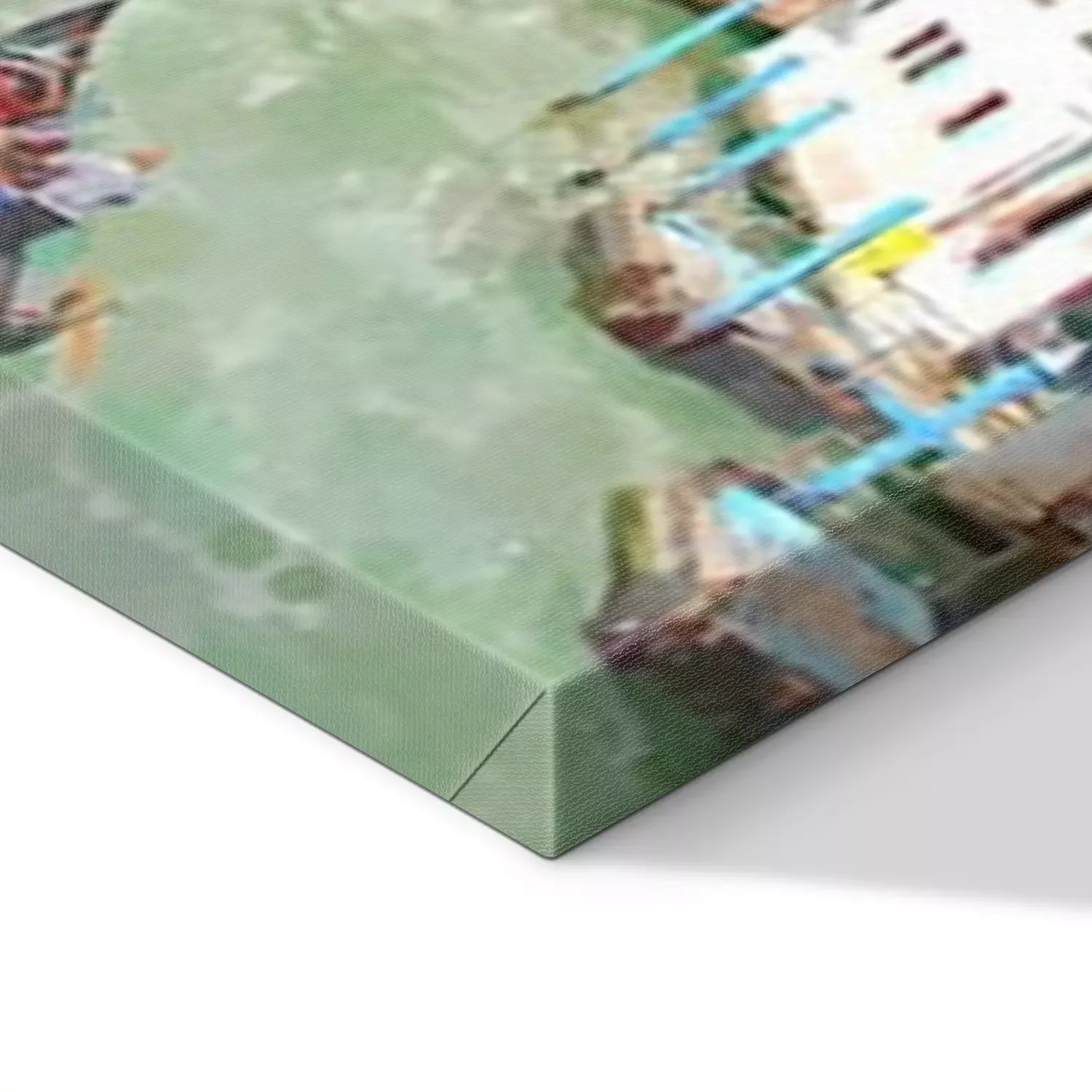 De print wordt aangebracht op hoogwaardig canvas dat op een schildersweefgetouw (spieraam) wordt gespannen. Omdat de print de zijranden bedekt, hoeft het ontwerp niet met een extra kader te worden omlijst. Wij raden ook composities aan die uit meerdere foto's bestaan en zo een coherente compositie vormen.