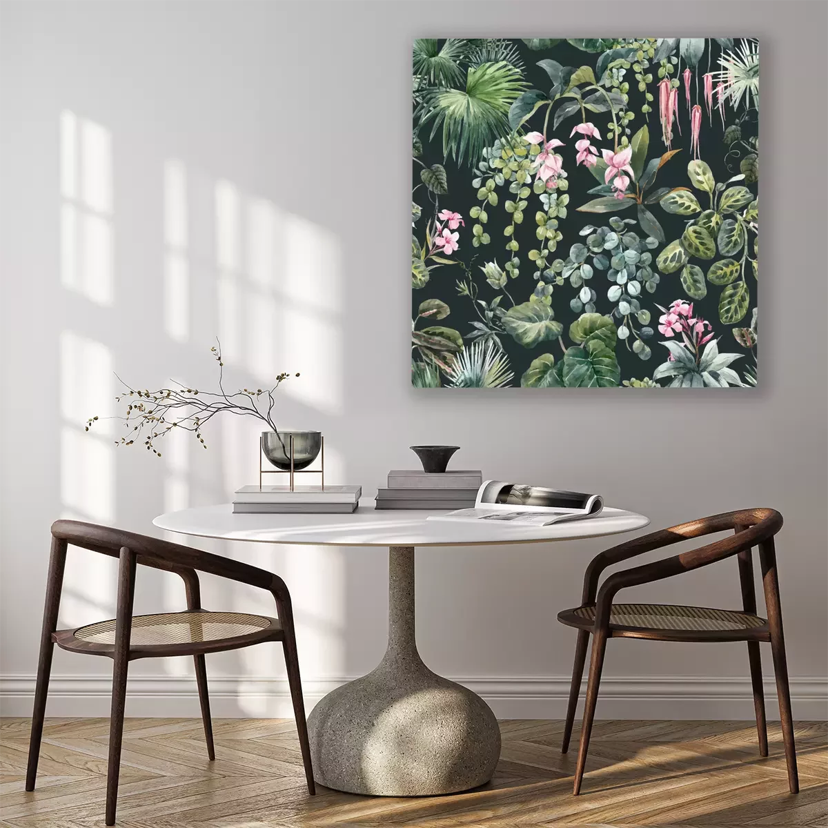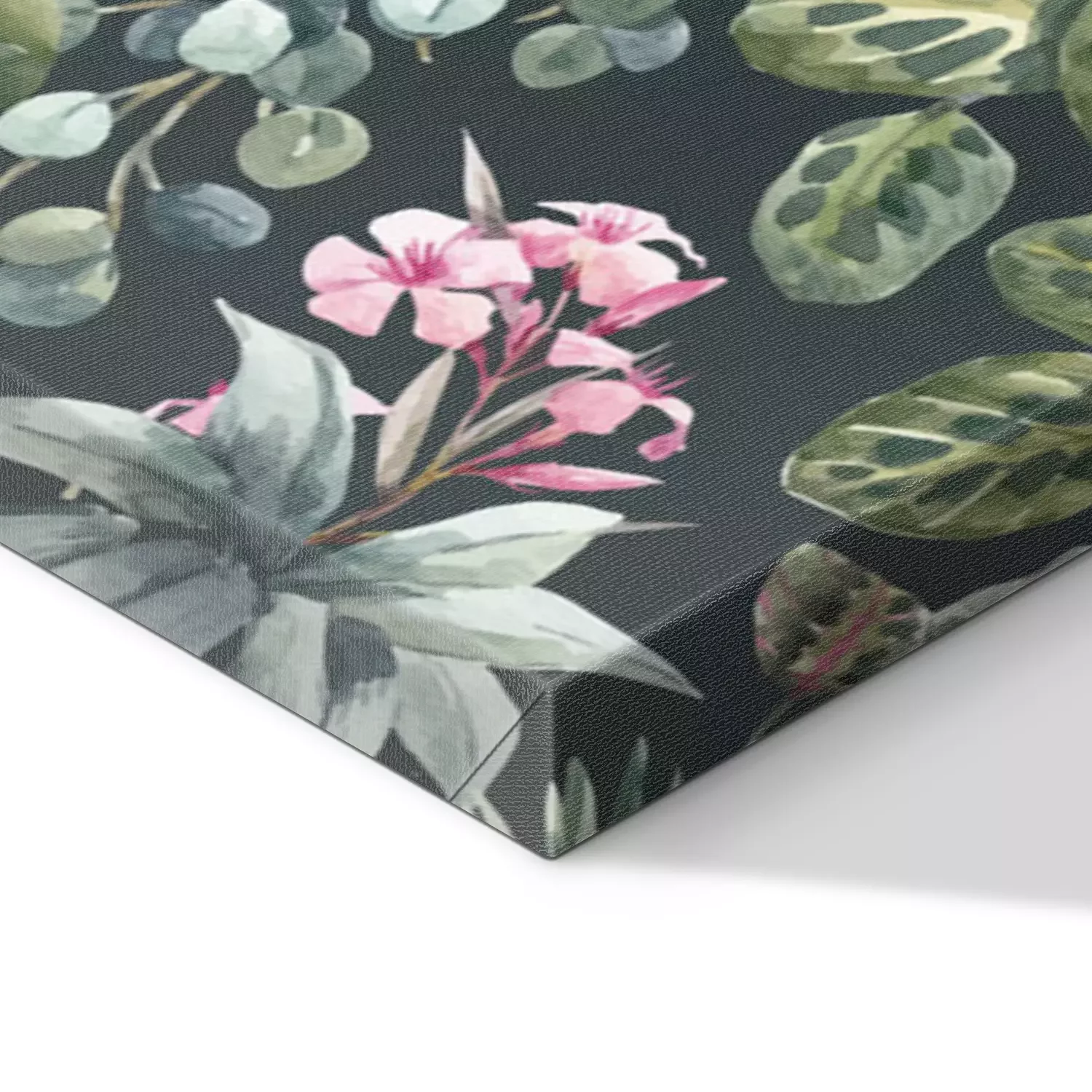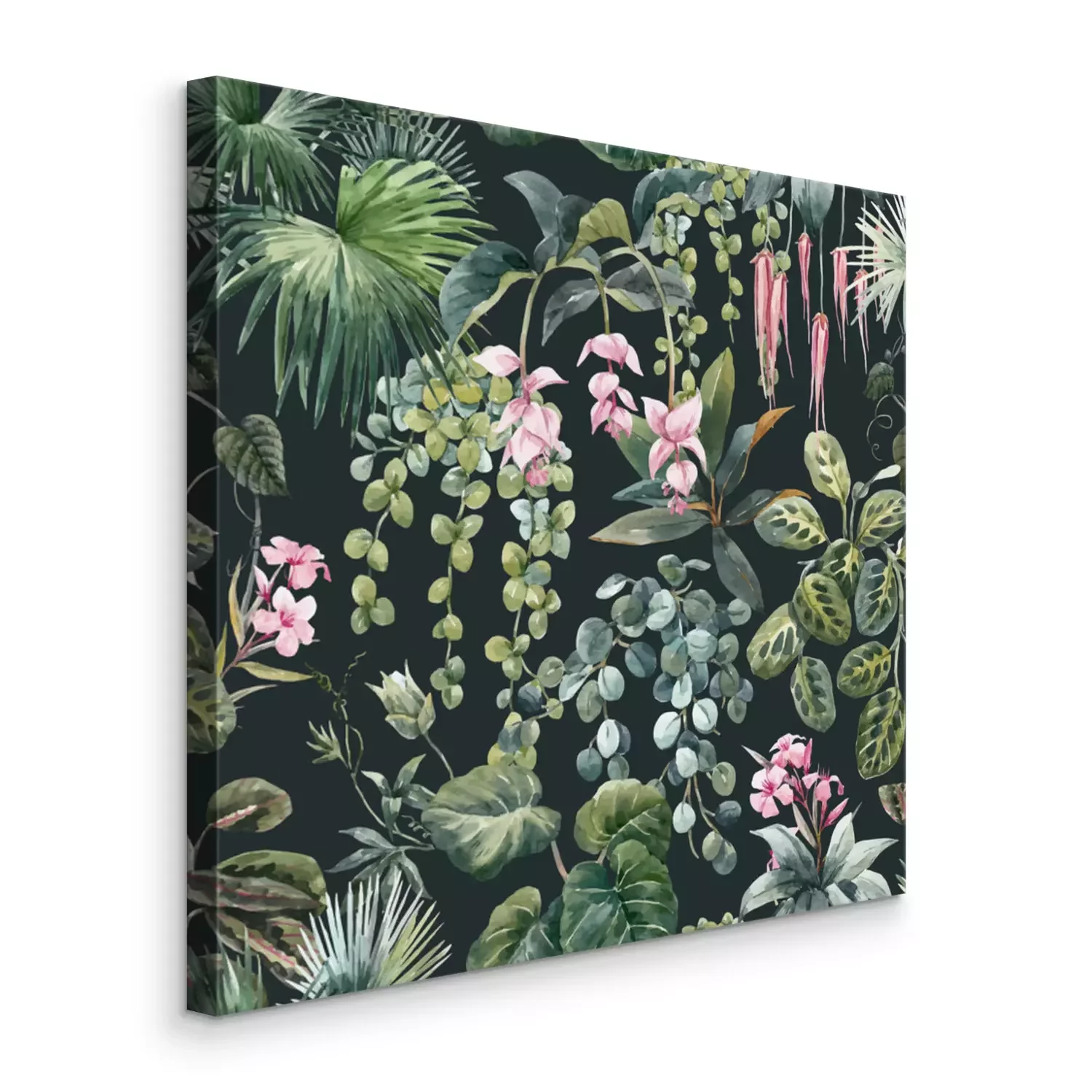 Canvas: Waterverfplanten op een donkergroene achtergrond, botanisch patroon