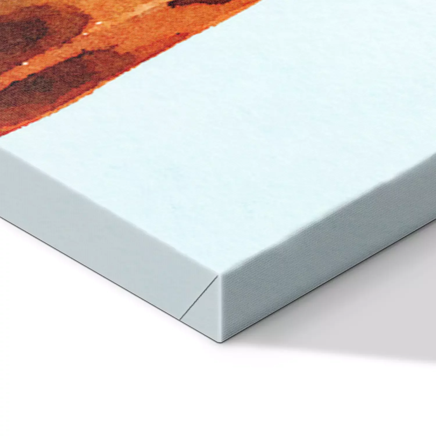 De print wordt aangebracht op hoogwaardig canvas dat op een schildersweefgetouw (spieraam) wordt gespannen. Omdat de print de zijranden bedekt, hoeft het ontwerp niet met een extra kader te worden omlijst. Wij raden ook composities aan die uit meerdere foto's bestaan en zo een coherente compositie vormen.