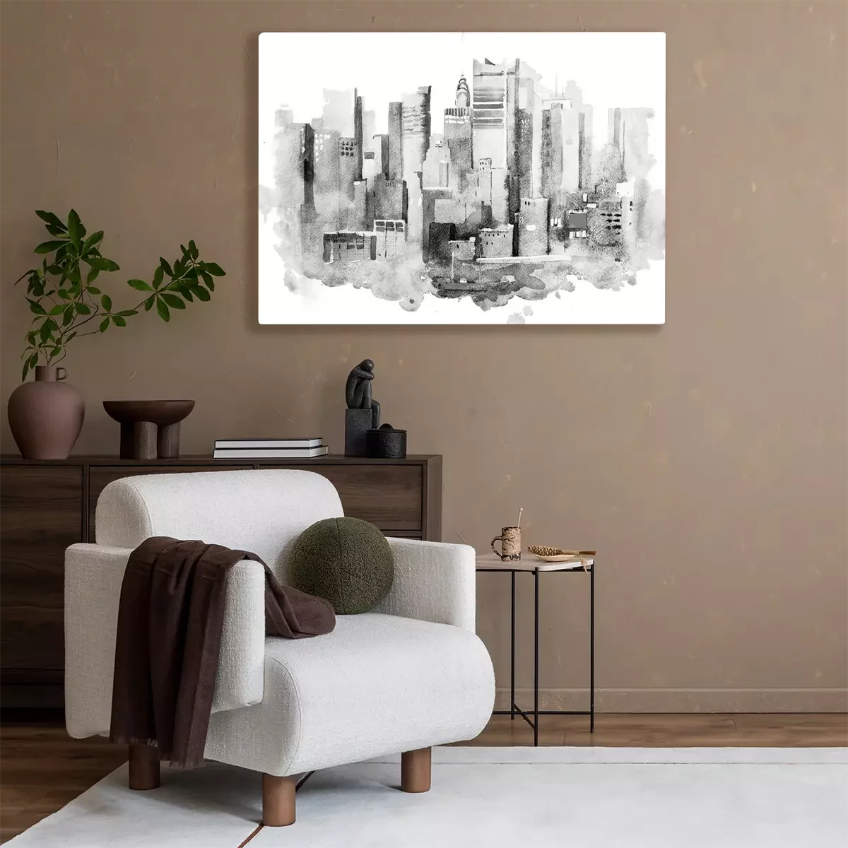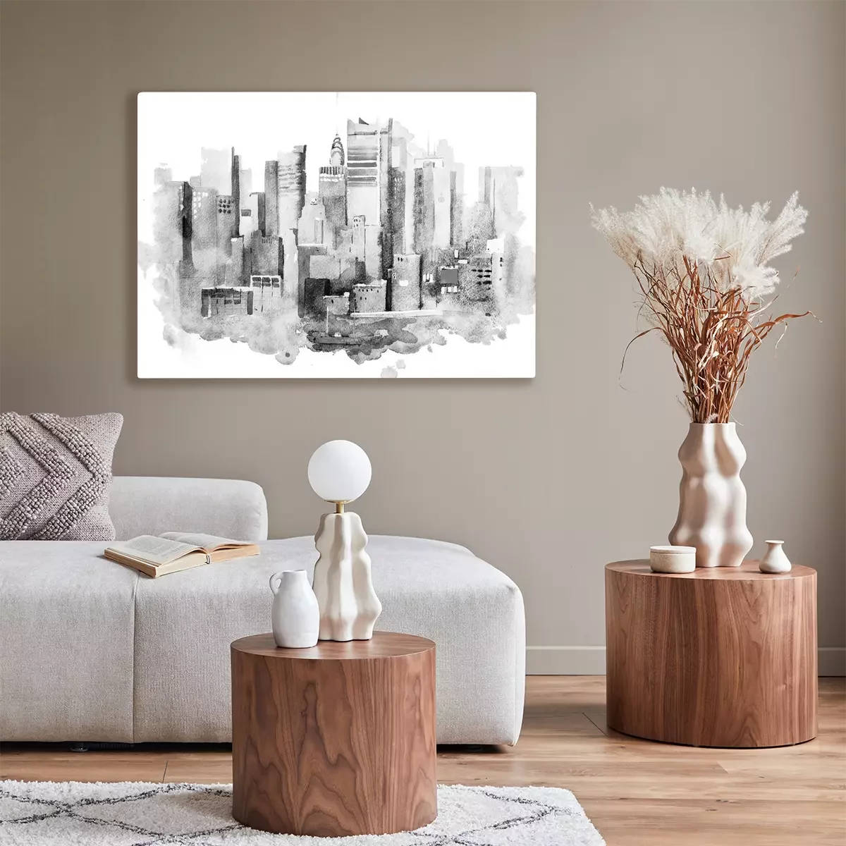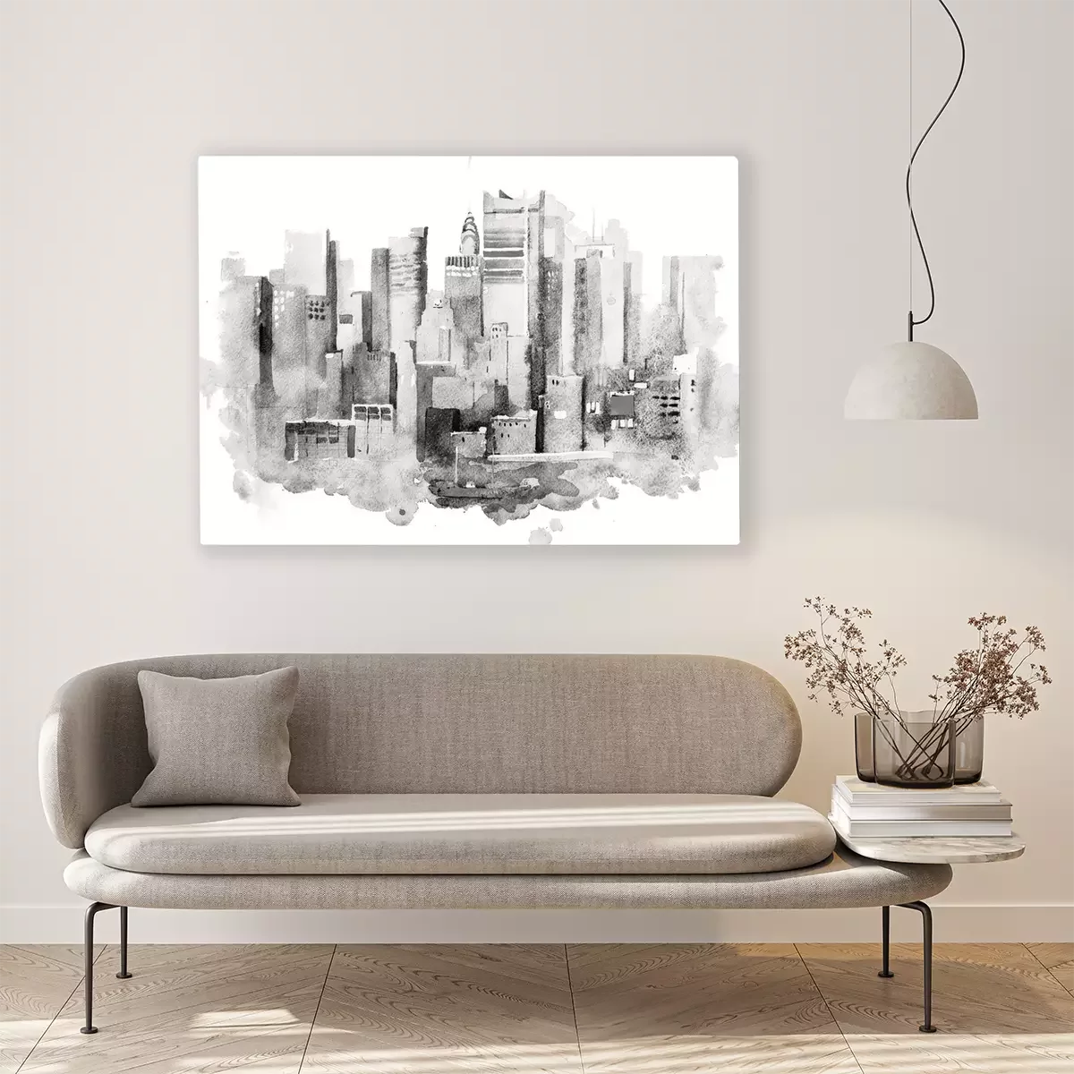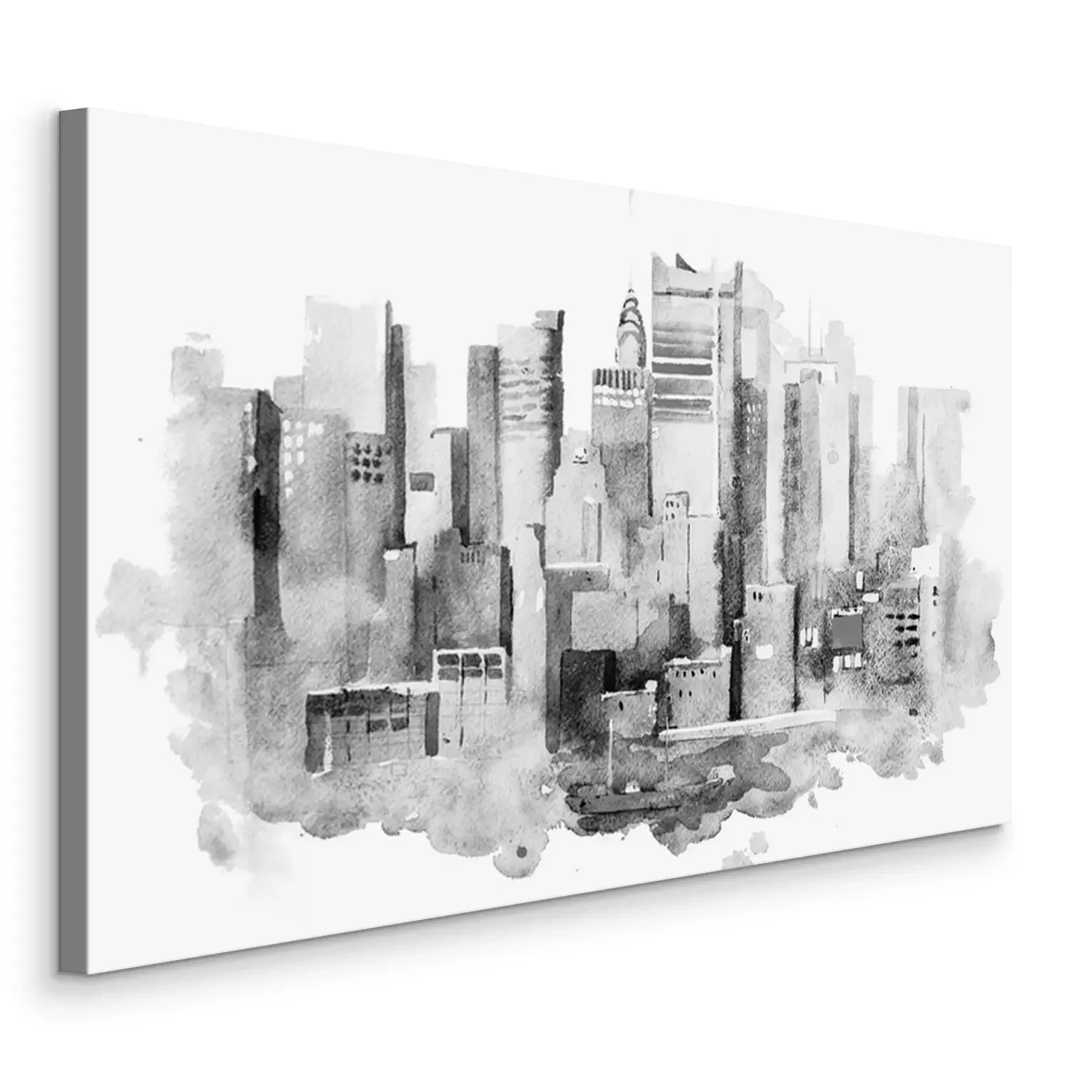 Canvas: Waterverftekening van New York stadslandschap, USA. Manhattan aquarel schilderij