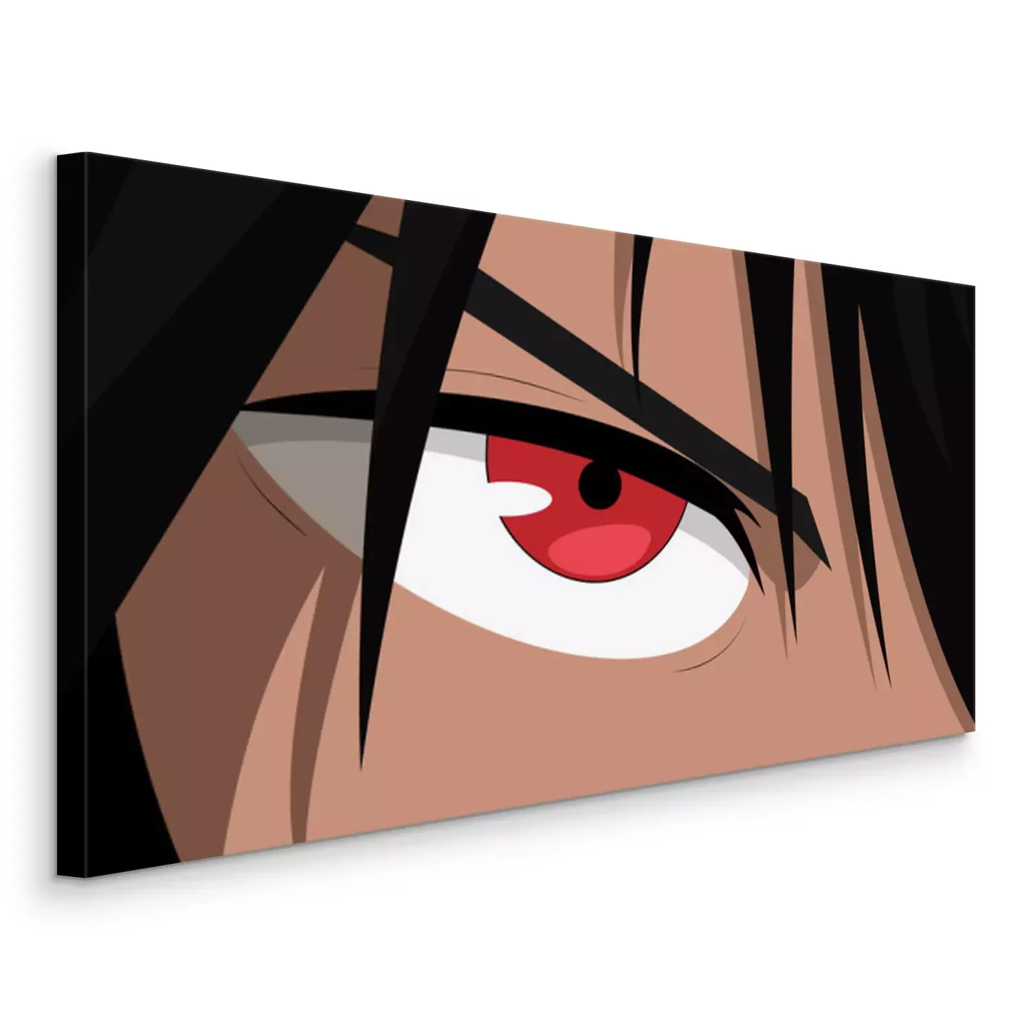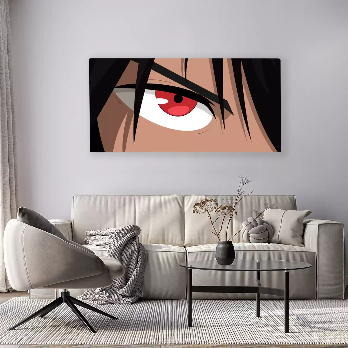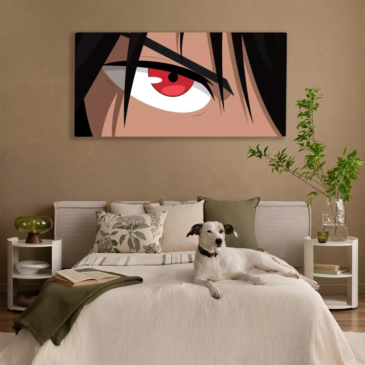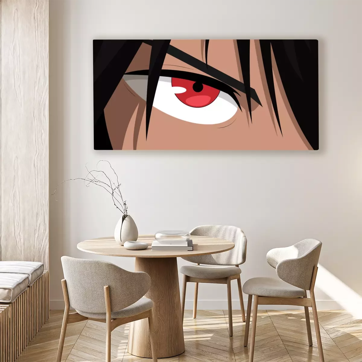 Canvas Web banner for anime, manga. Anime face with red eyes from cartoon. Vector illustration
