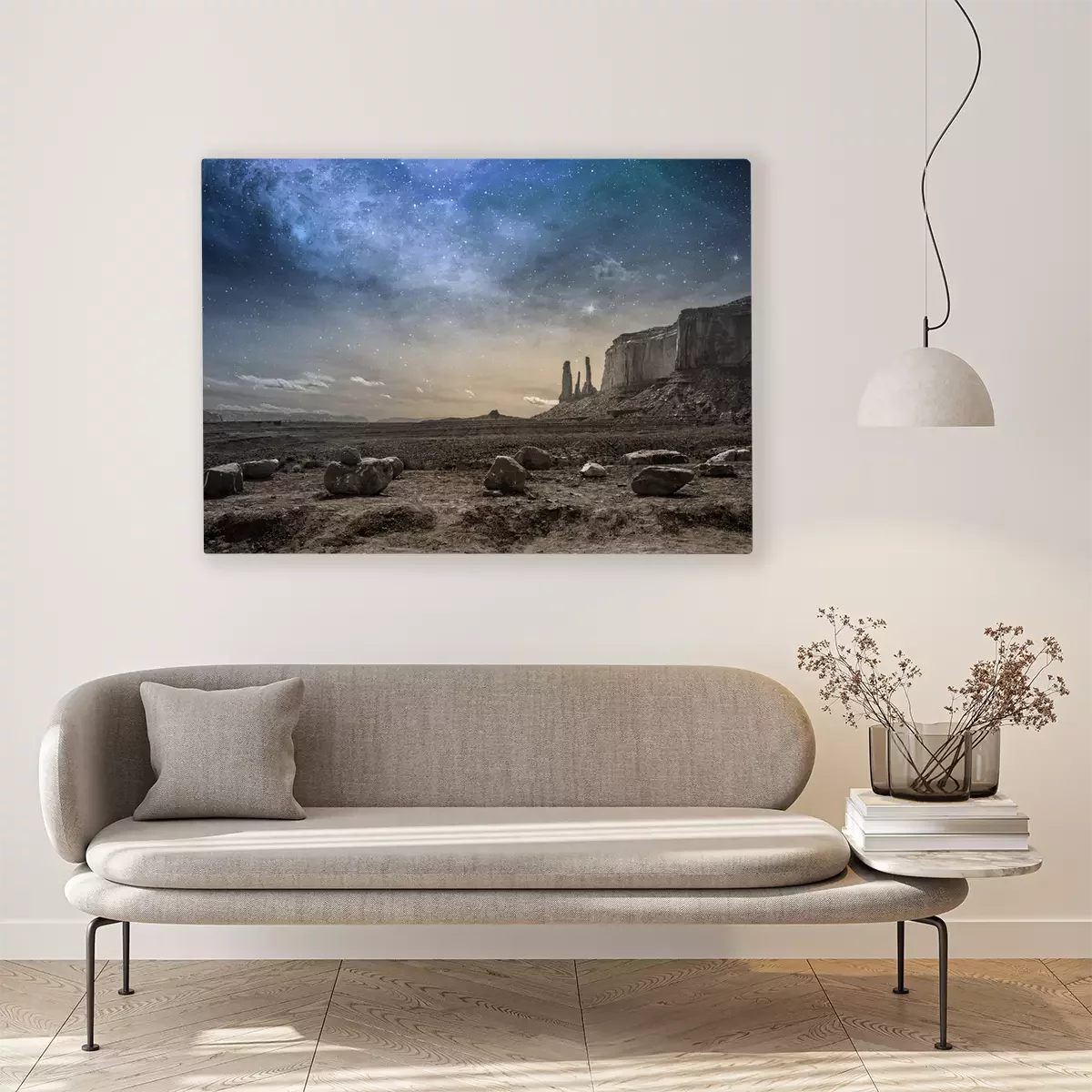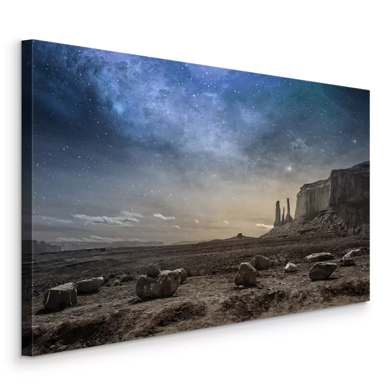 Canvas weergave van een rotsachtige woestijn landschap in de schemering