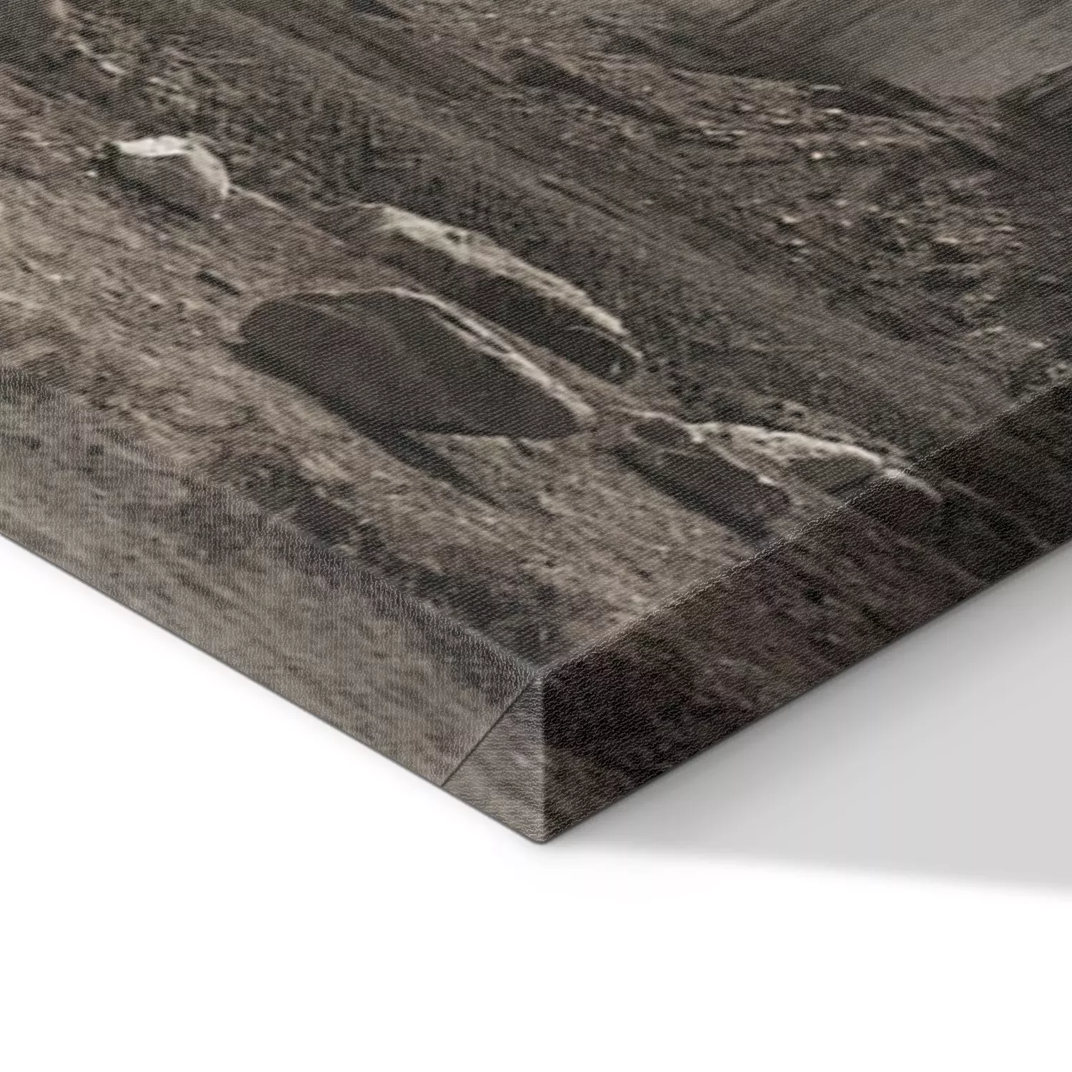 De print wordt aangebracht op hoogwaardig canvas dat op een schildersweefgetouw (spieraam) wordt gespannen. Omdat de print de zijranden bedekt, hoeft het ontwerp niet met een extra kader te worden omlijst. Wij raden ook composities aan die uit meerdere foto's bestaan en zo een coherente compositie vormen.