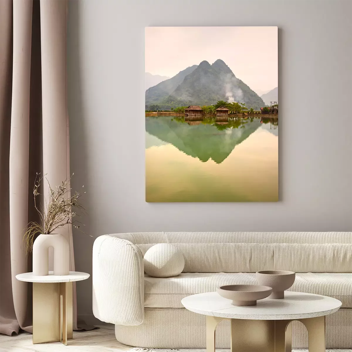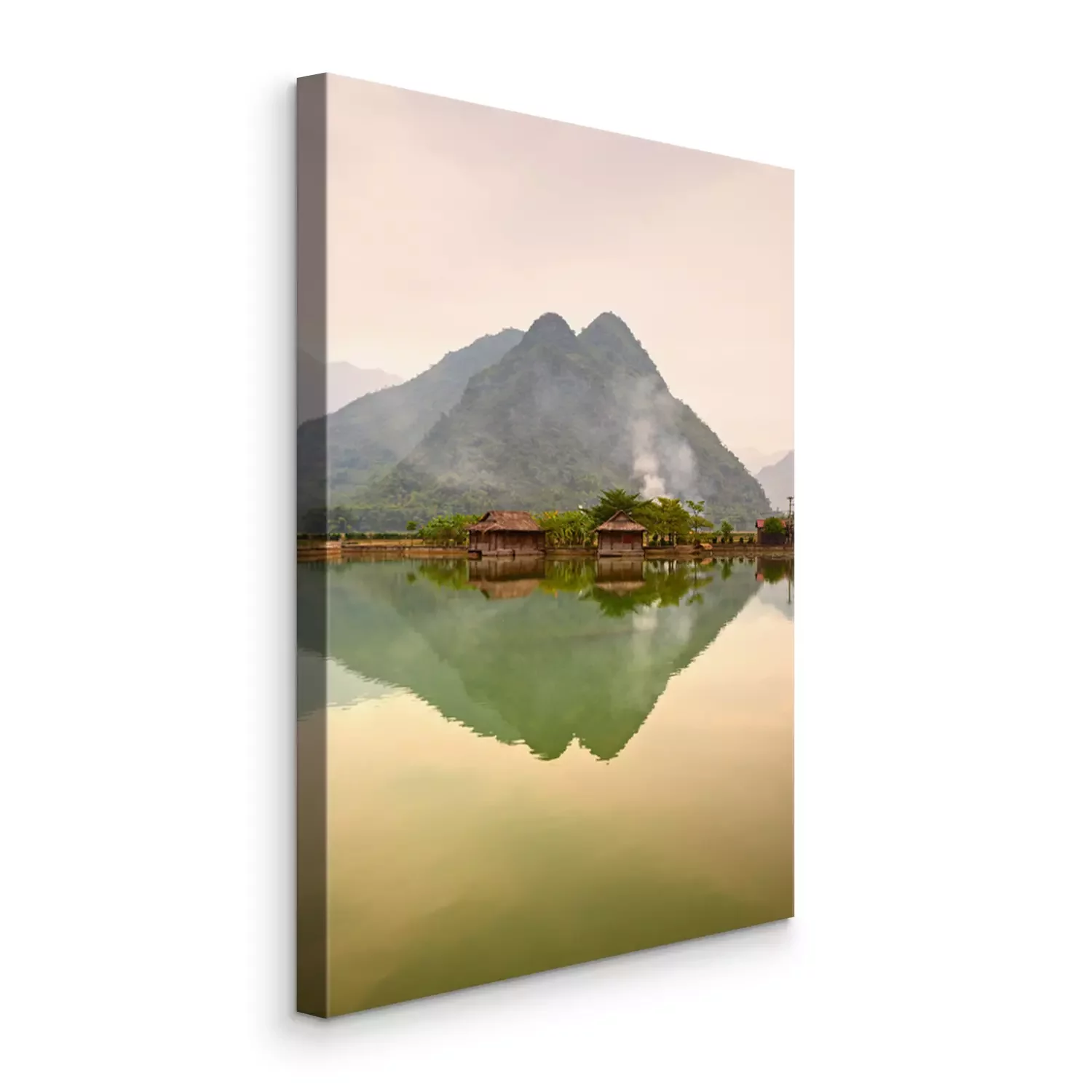 Canvas: Weerspiegeling van de bergen in het oppervlak van het meer