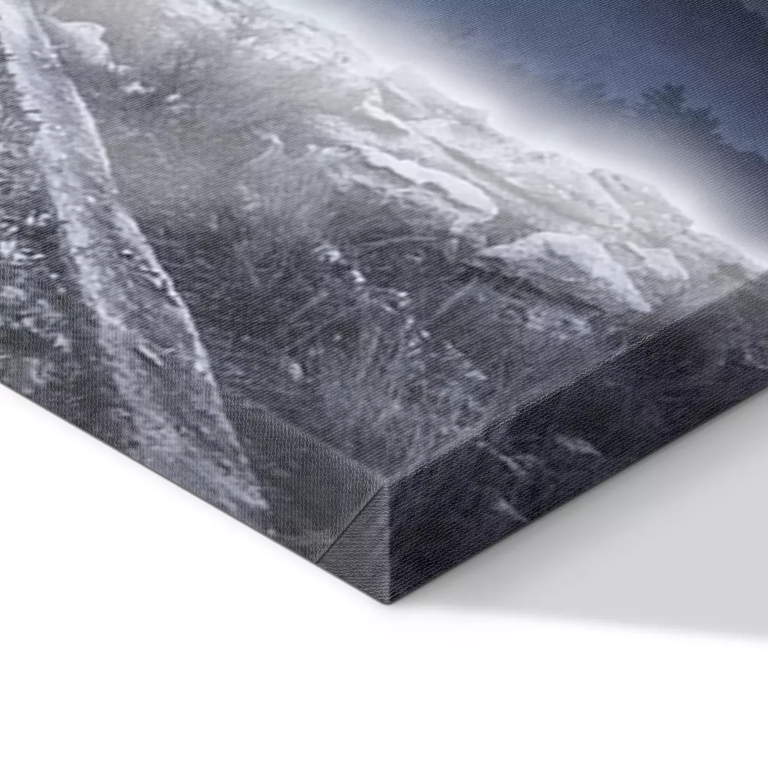 De print wordt aangebracht op hoogwaardig canvas dat op een schildersweefgetouw (spieraam) wordt gespannen. Omdat de print de zijranden bedekt, hoeft het ontwerp niet met een extra kader te worden omlijst. Wij raden ook composities aan die uit meerdere foto's bestaan en zo een coherente compositie vormen.