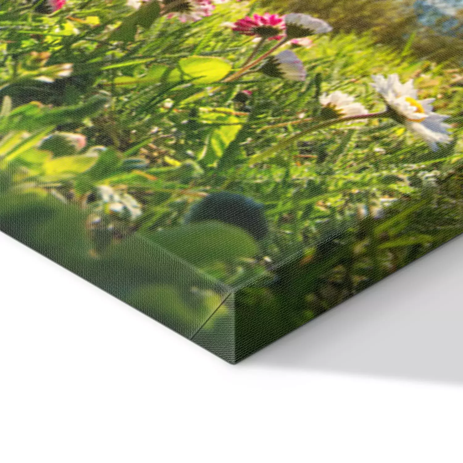 De print wordt aangebracht op hoogwaardig canvas dat op een schildersweefgetouw (spieraam) wordt gespannen. Omdat de print de zijranden bedekt, hoeft het ontwerp niet met een extra kader te worden omlijst. Wij raden ook composities aan die uit meerdere foto's bestaan en zo een coherente compositie vormen.