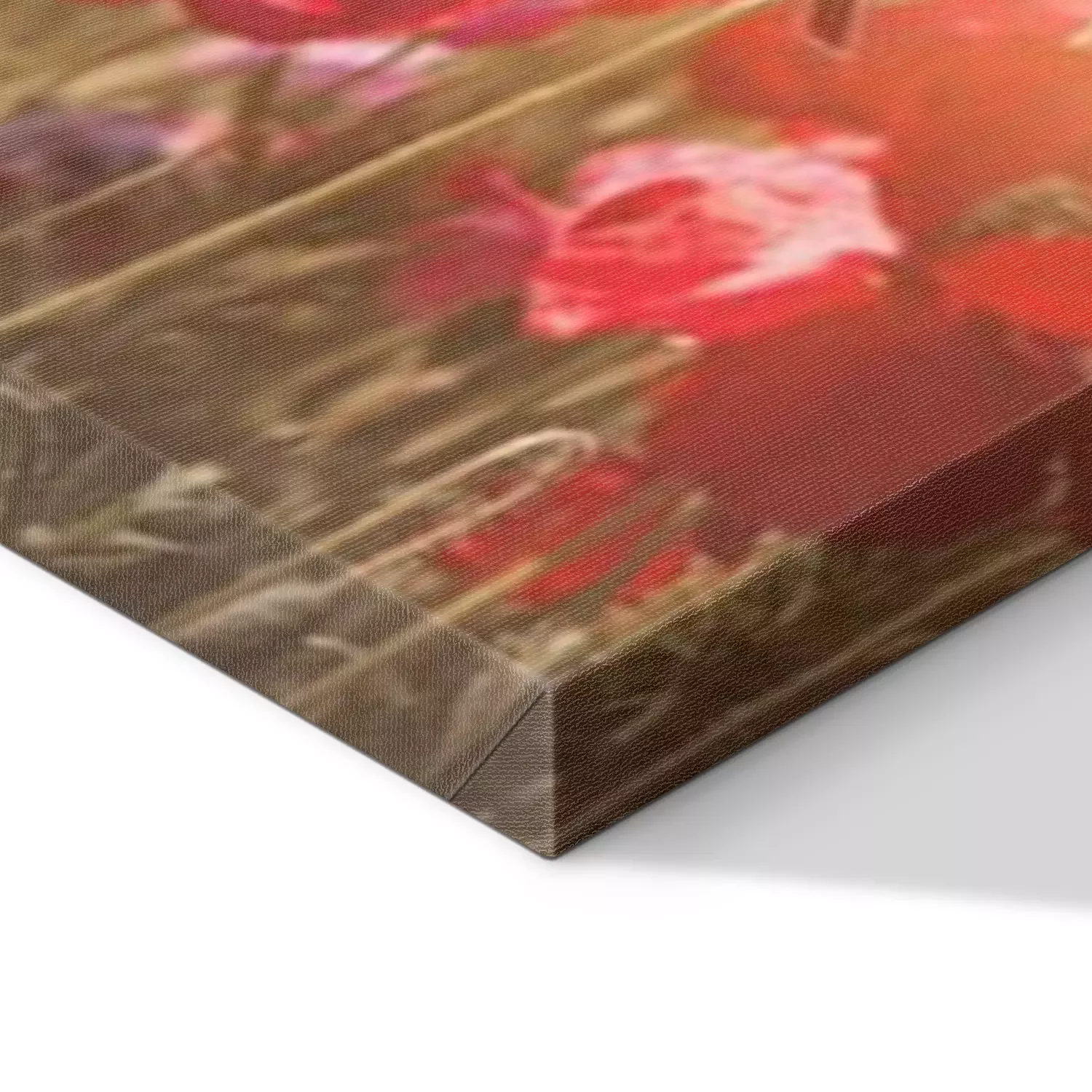 De print wordt aangebracht op hoogwaardig canvas dat op een schildersweefgetouw (spieraam) wordt gespannen. Omdat de print de zijranden bedekt, hoeft het ontwerp niet met een extra kader te worden omlijst. Wij raden ook composities aan die uit meerdere foto's bestaan en zo een coherente compositie vormen.