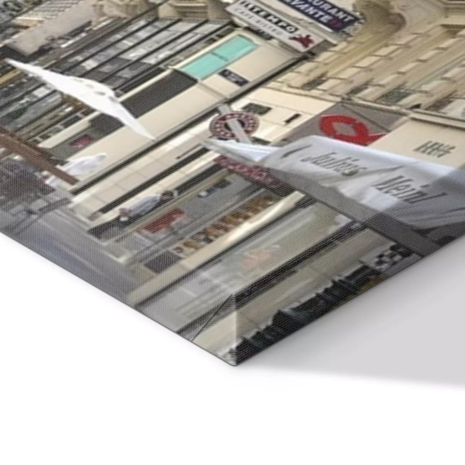 De print wordt aangebracht op hoogwaardig canvas dat op een schildersweefgetouw (spieraam) wordt gespannen. Omdat de print de zijranden bedekt, hoeft het ontwerp niet met een extra kader te worden omlijst. Wij raden ook composities aan die uit meerdere foto's bestaan en zo een coherente compositie vormen.