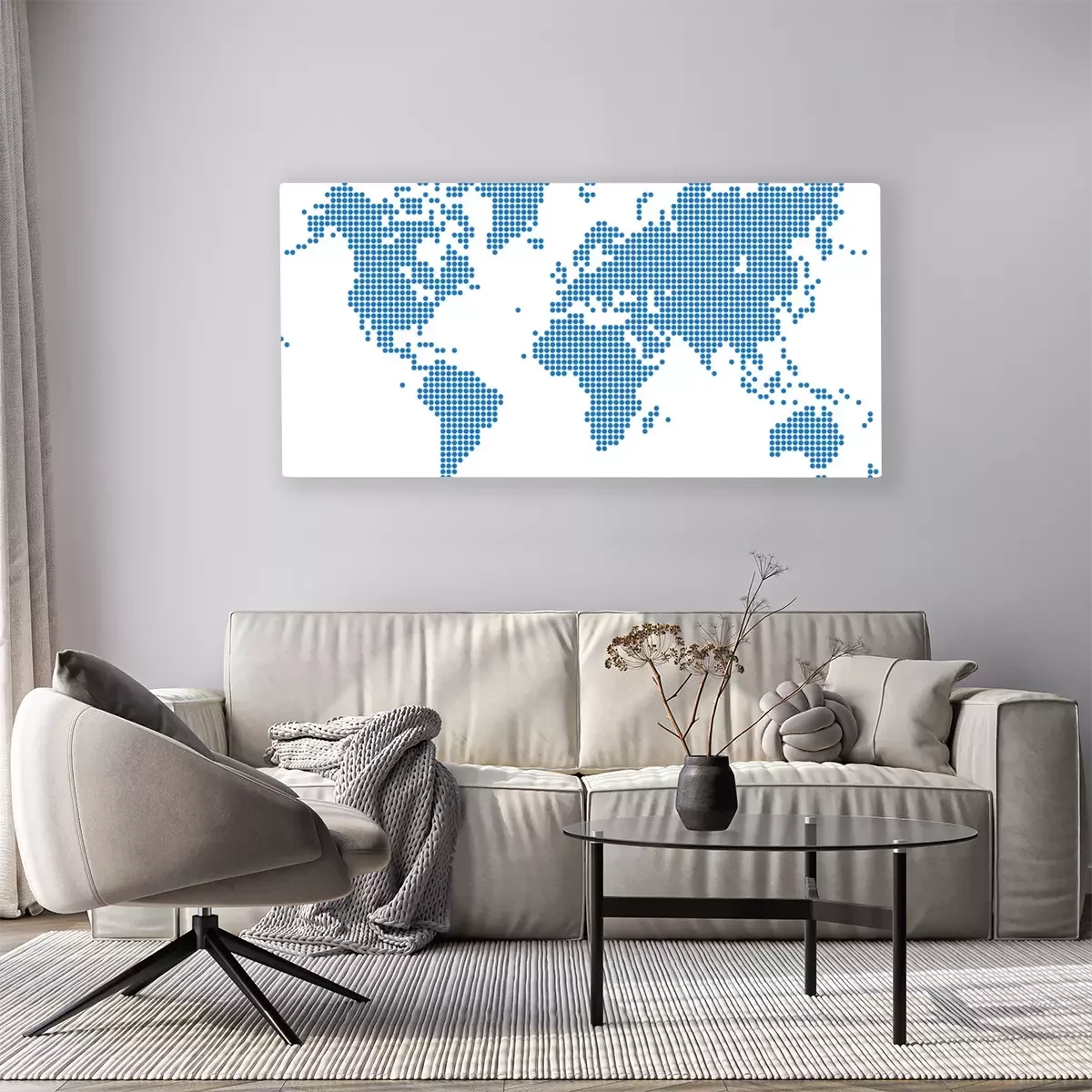 Canvas: Wereldkaart gemaakt van blauwe stippen