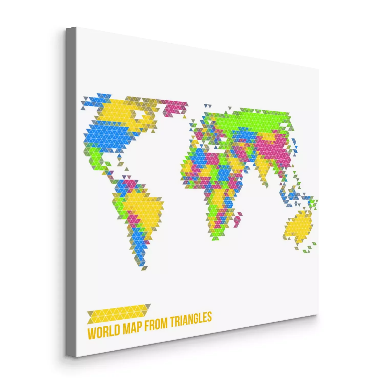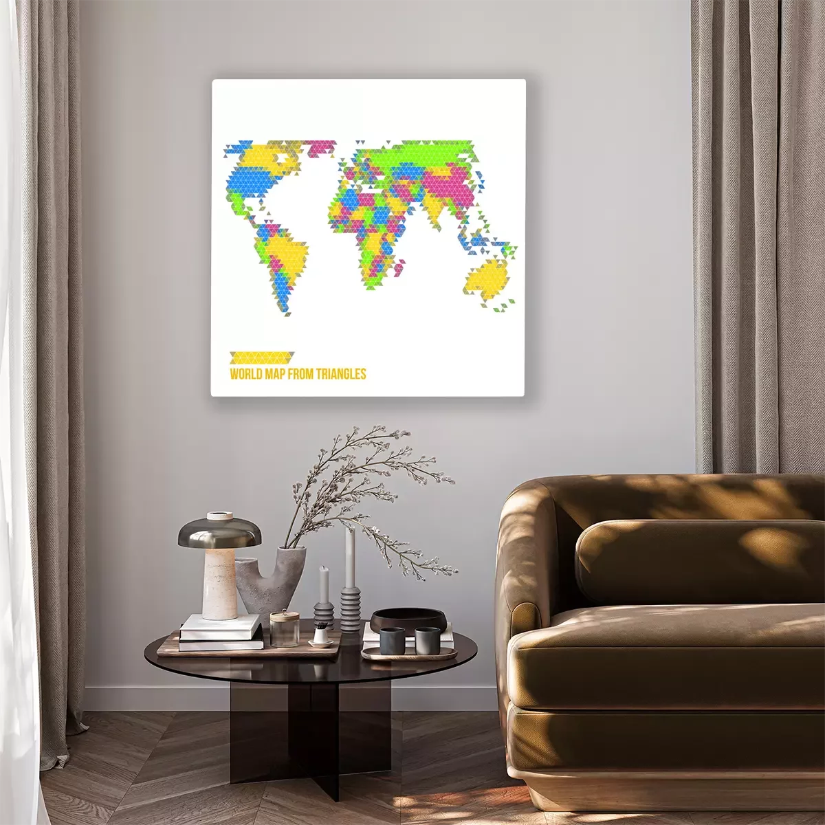 Canvas Wereldkaart gemaakt van gekleurde driehoeken