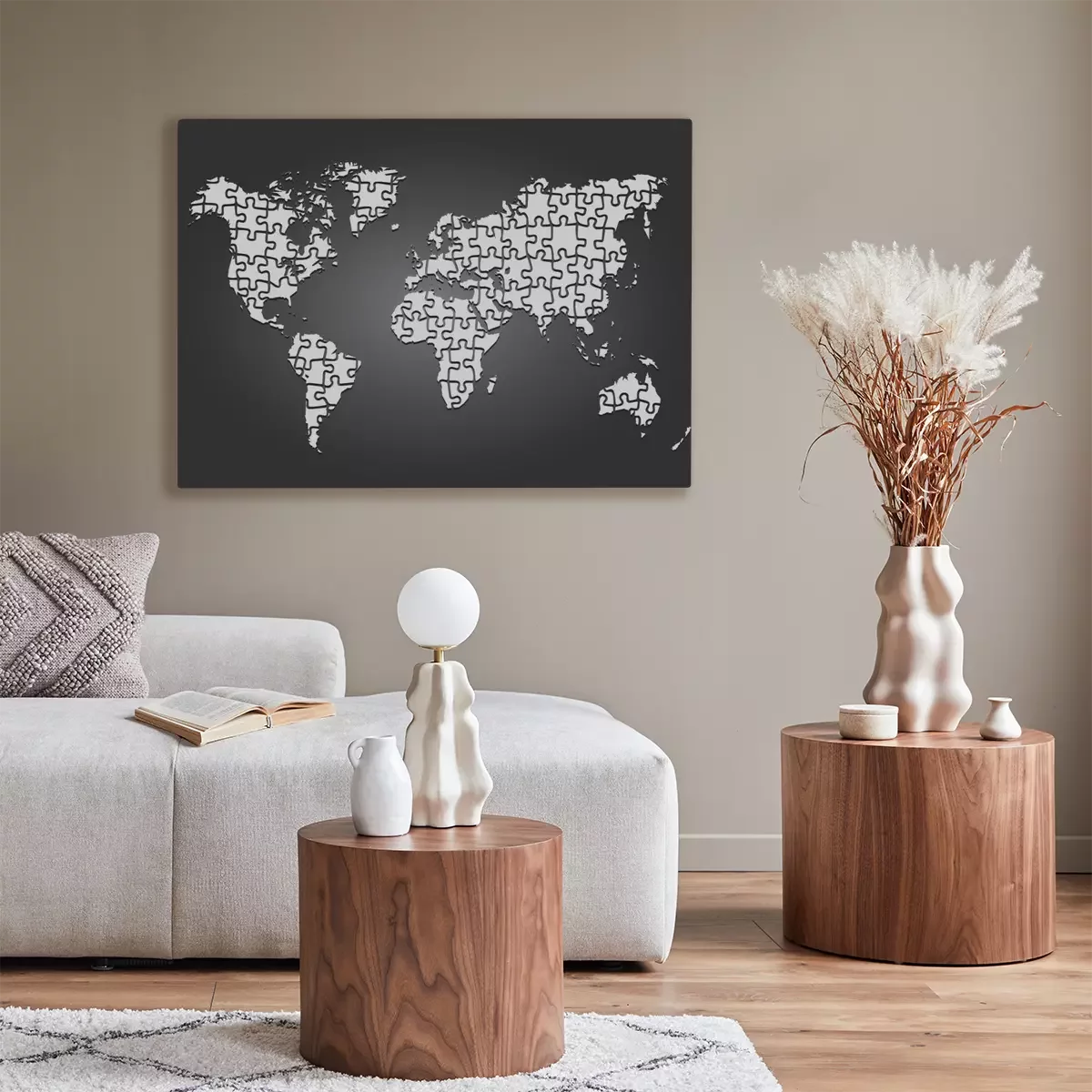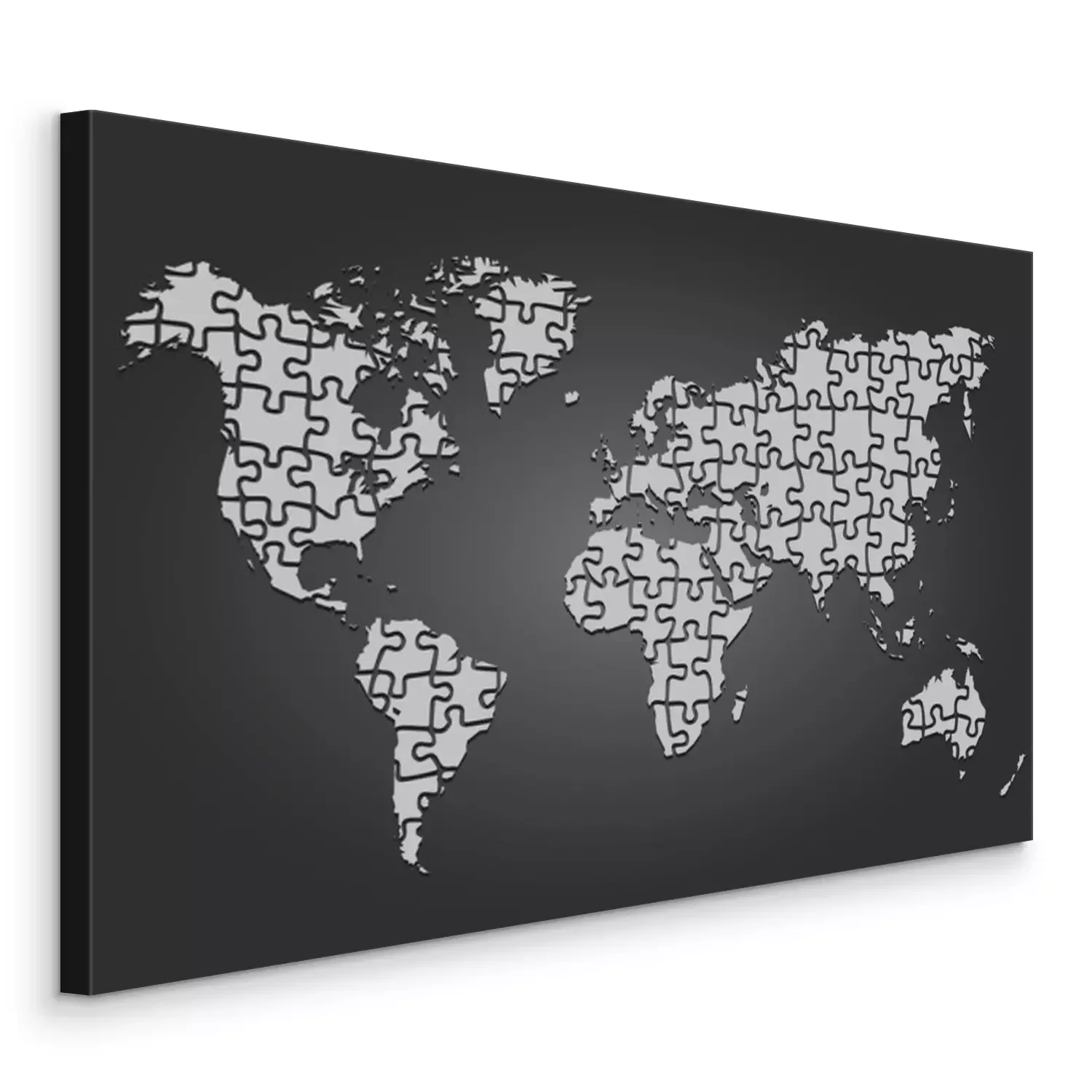 Canvas: Wereldkaart gemaakt van puzzelstukjes