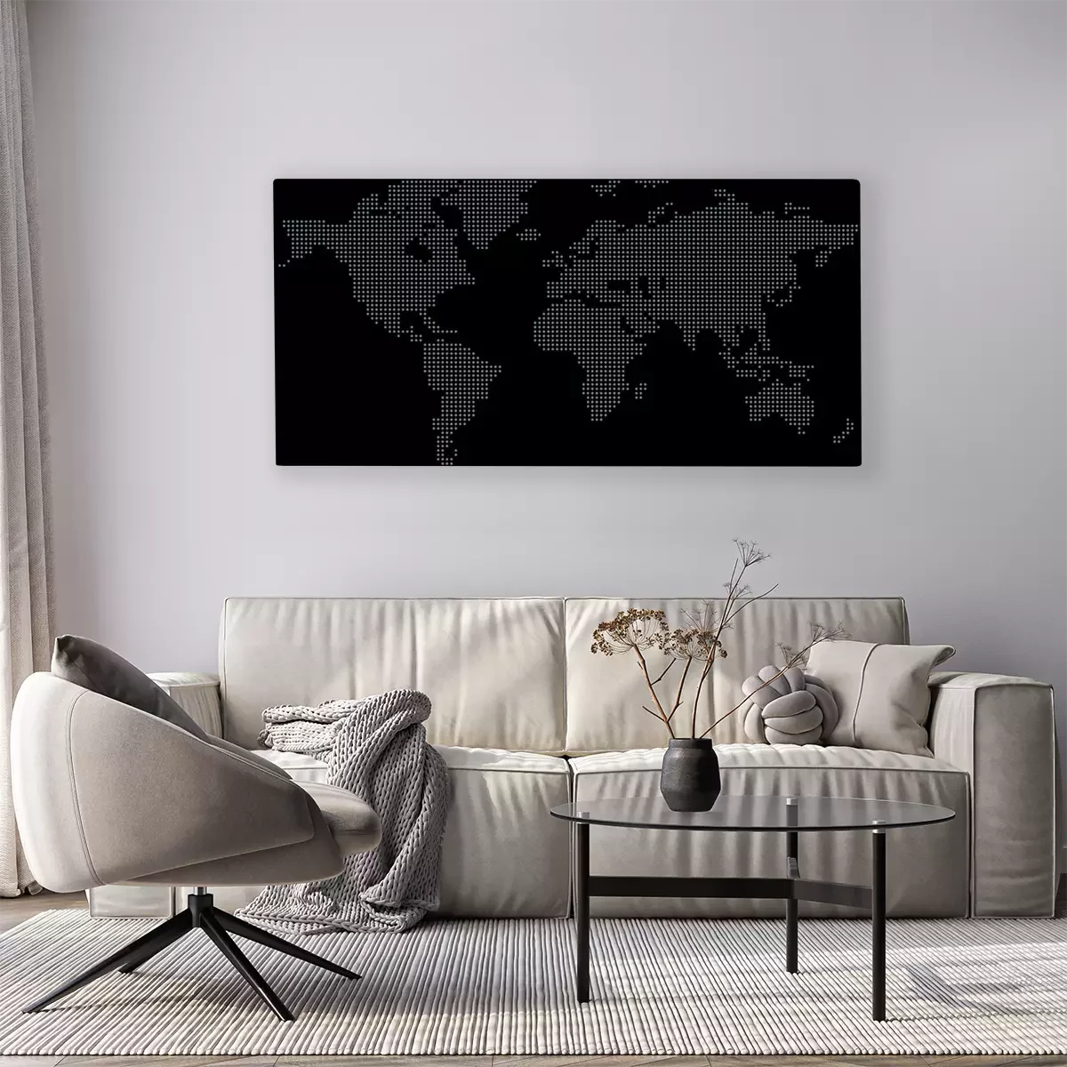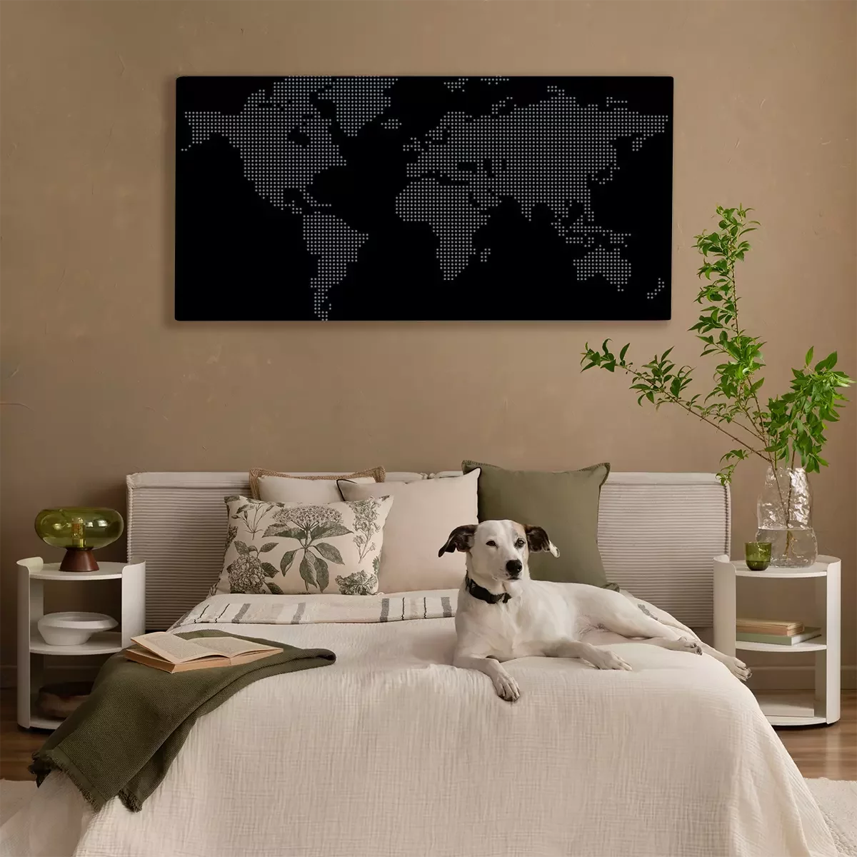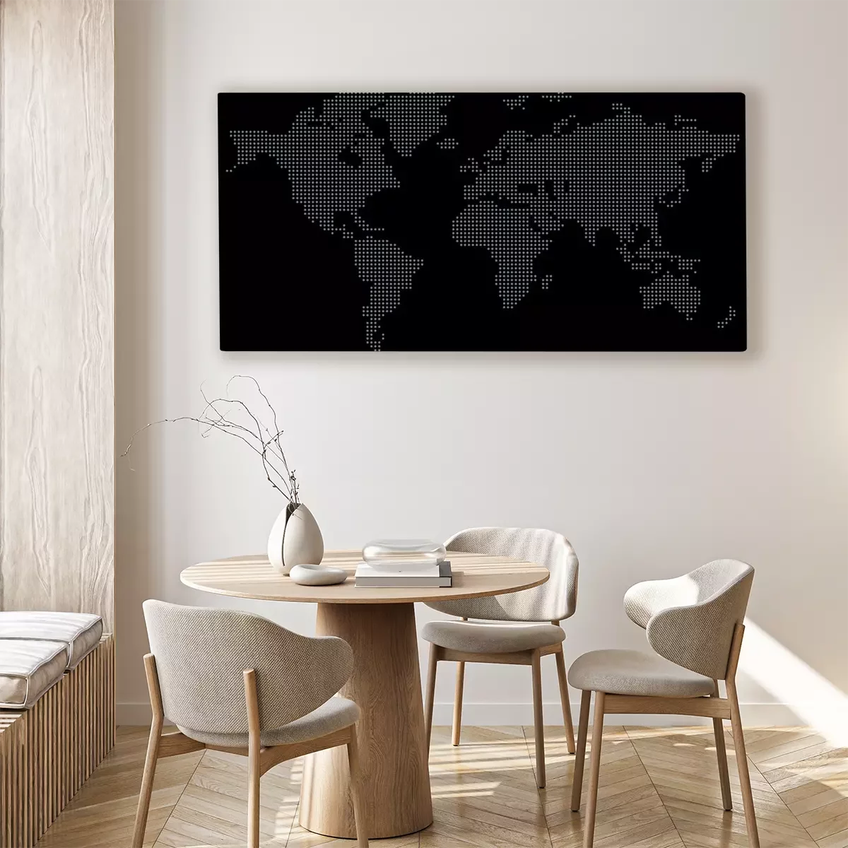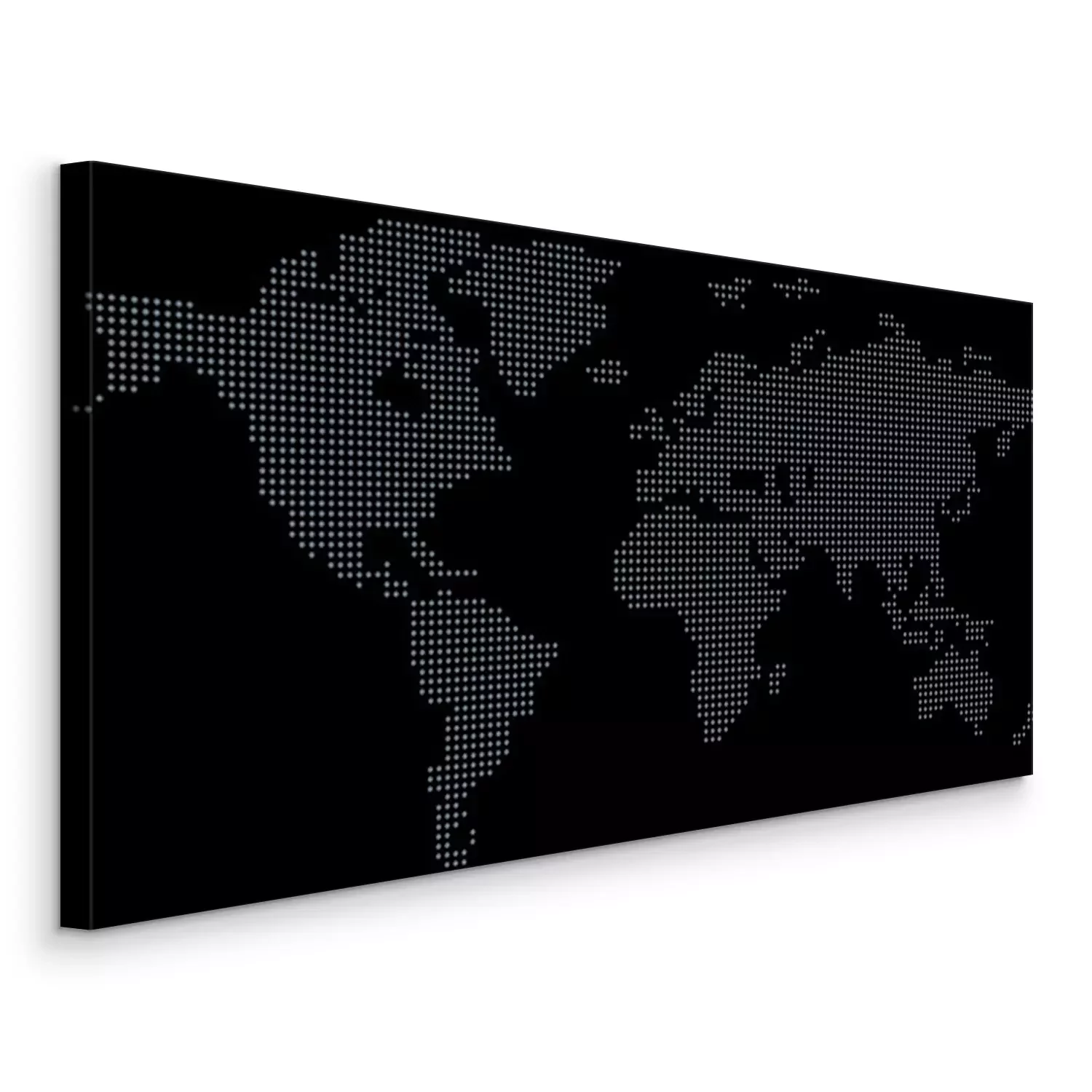 Canvas: Wereldkaart gemaakt van stippen op een zwarte achtergrond