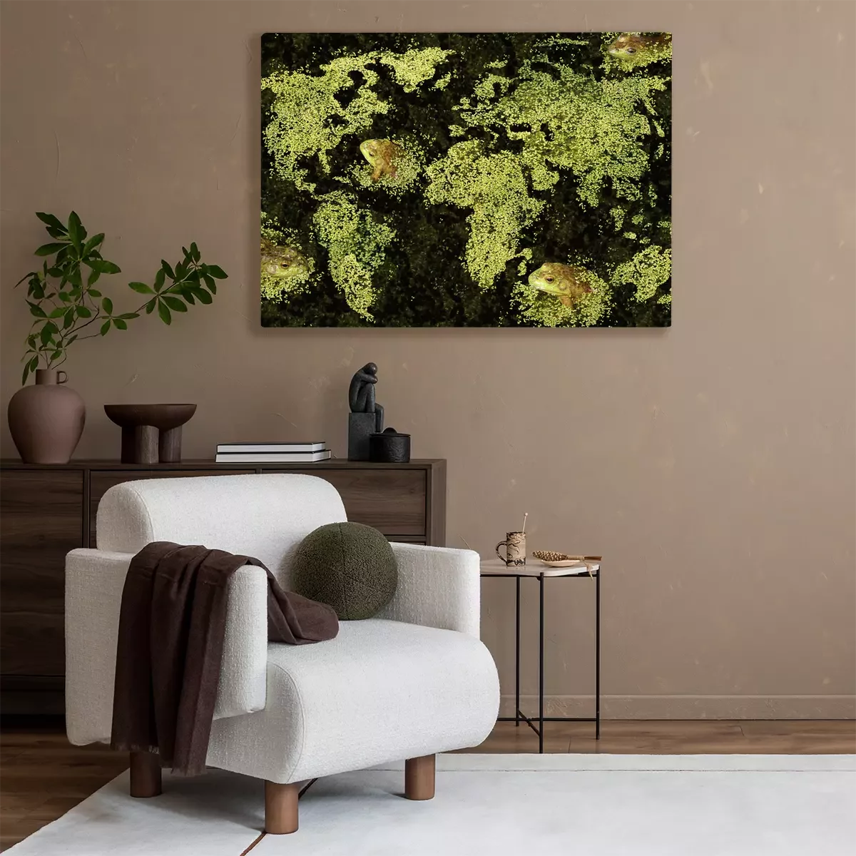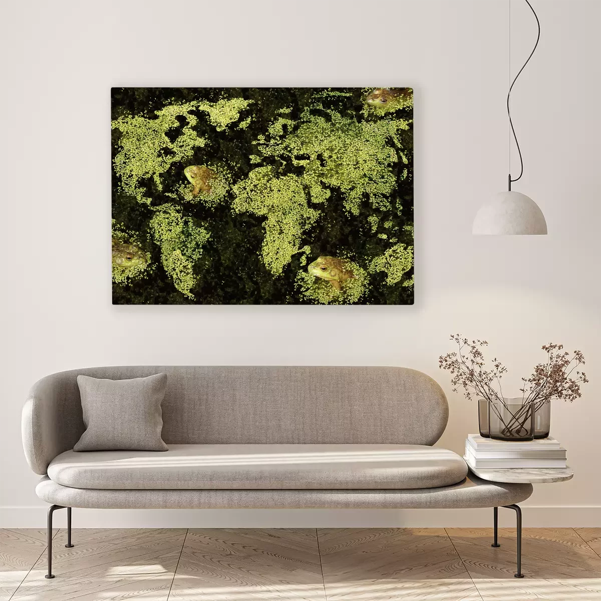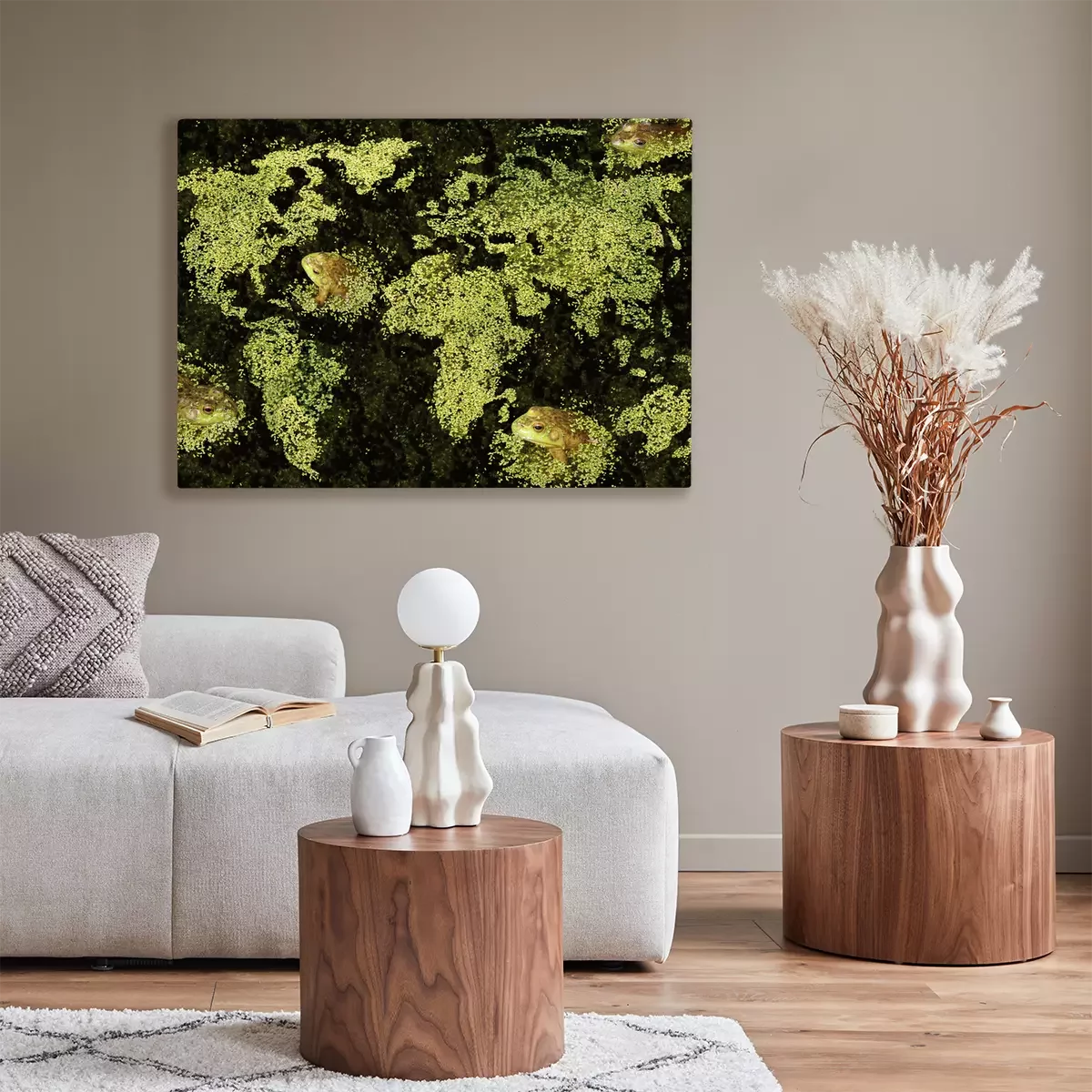 De print wordt aangebracht op hoogwaardig canvas dat op een schildersweefgetouw (spieraam) wordt gespannen. Omdat de print de zijranden bedekt, hoeft het ontwerp niet met een extra kader te worden omlijst. Wij raden ook composities aan die uit meerdere foto's bestaan en zo een coherente compositie vormen.
