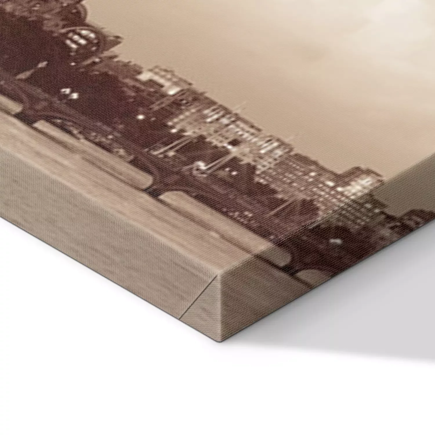 De print wordt aangebracht op hoogwaardig canvas dat op een schildersweefgetouw (spieraam) wordt gespannen. Omdat de print de zijranden bedekt, hoeft het ontwerp niet met een extra kader te worden omlijst. Wij raden ook composities aan die uit meerdere foto's bestaan en zo een coherente compositie vormen.