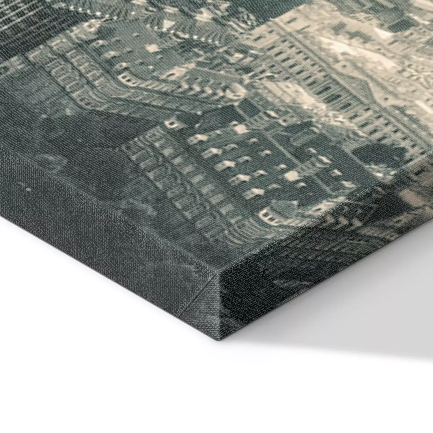 De print wordt aangebracht op hoogwaardig canvas dat op een schildersweefgetouw (spieraam) wordt gespannen. Omdat de print de zijranden bedekt, hoeft het ontwerp niet met een extra kader te worden omlijst. Wij raden ook composities aan die uit meerdere foto's bestaan en zo een coherente compositie vormen.
