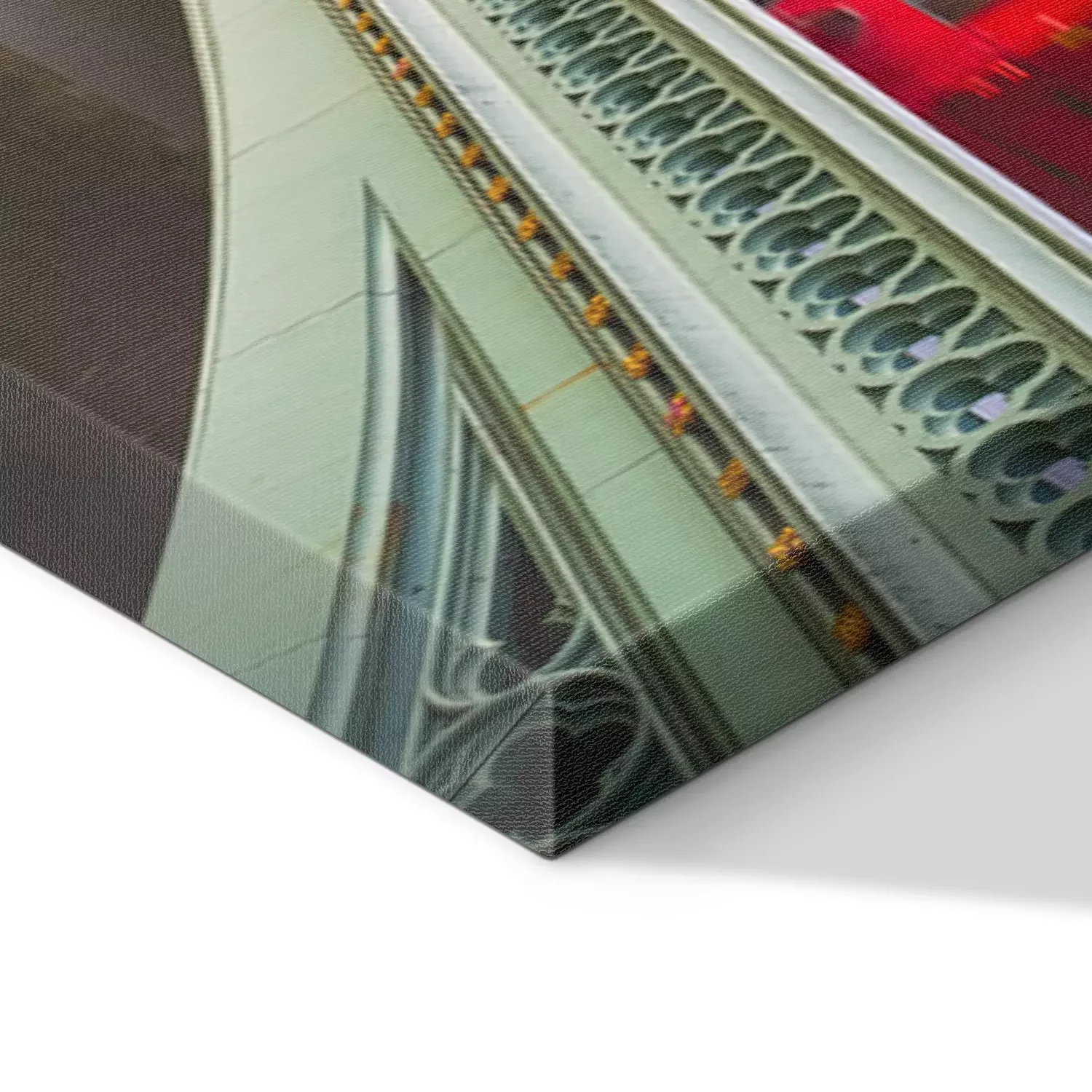 De print wordt aangebracht op hoogwaardig canvas dat op een schildersweefgetouw (spieraam) wordt gespannen. Omdat de print de zijranden bedekt, hoeft het ontwerp niet met een extra kader te worden omlijst. Wij raden ook composities aan die uit meerdere foto's bestaan en zo een coherente compositie vormen.