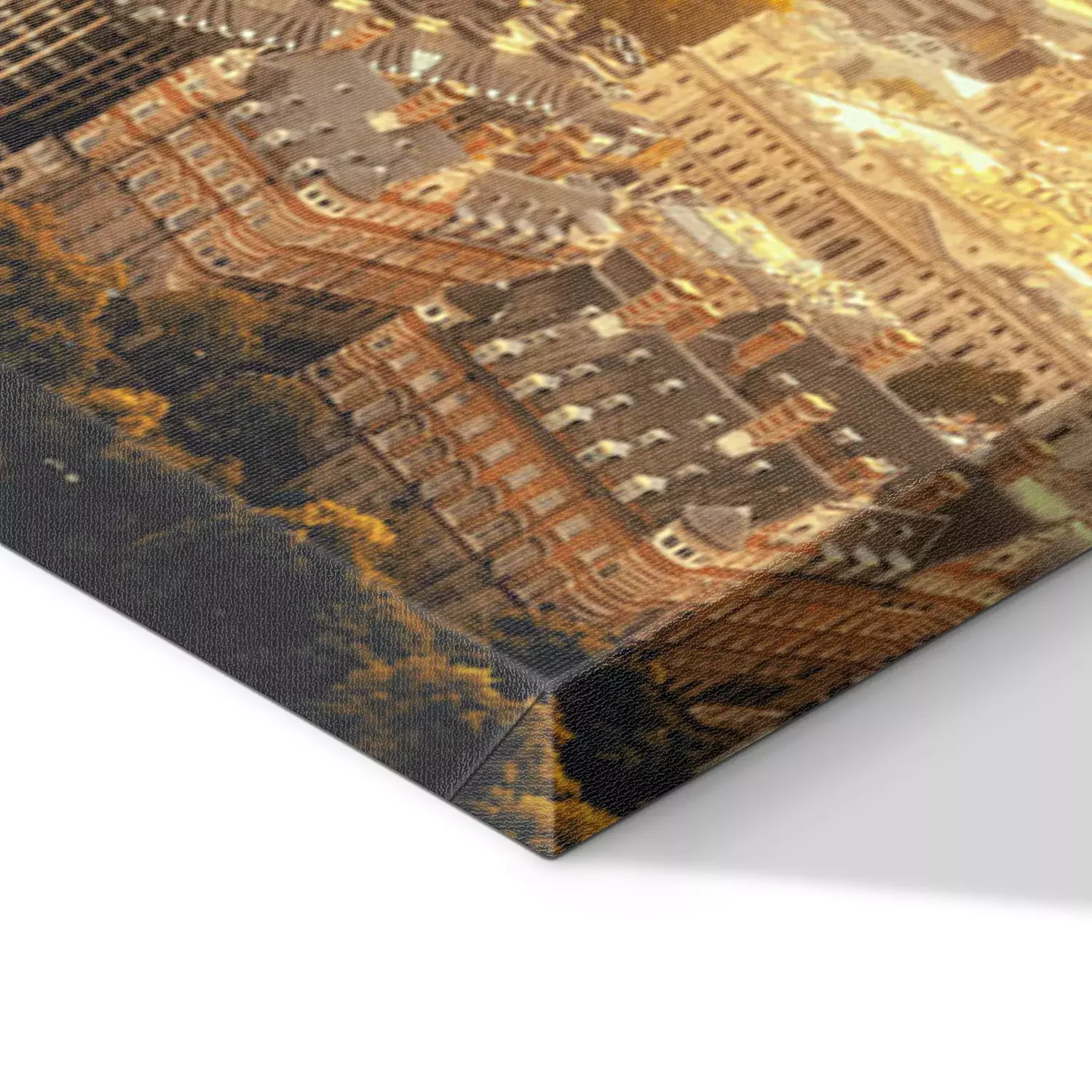 De print wordt aangebracht op hoogwaardig canvas dat op een schildersweefgetouw (spieraam) wordt gespannen. Omdat de print de zijranden bedekt, hoeft het ontwerp niet met een extra kader te worden omlijst. Wij raden ook composities aan die uit meerdere foto's bestaan en zo een coherente compositie vormen.