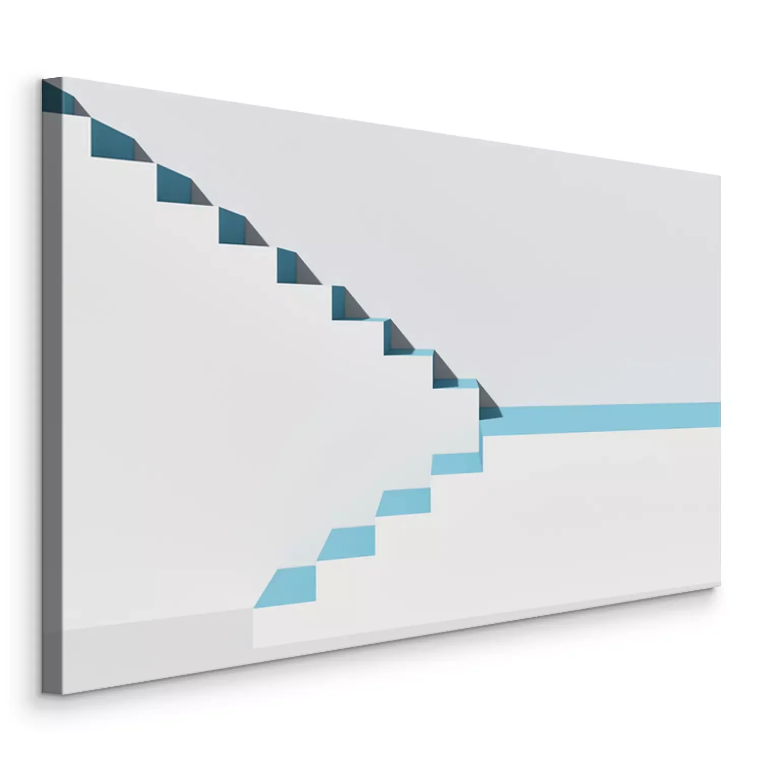 Canvas White and blue stairs on white background; abstract steps 3d rendering, 3d illustration