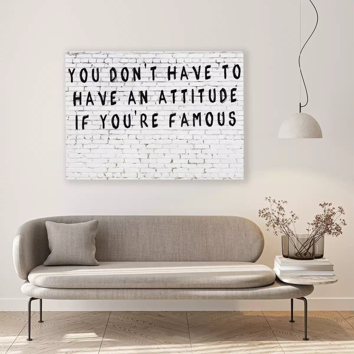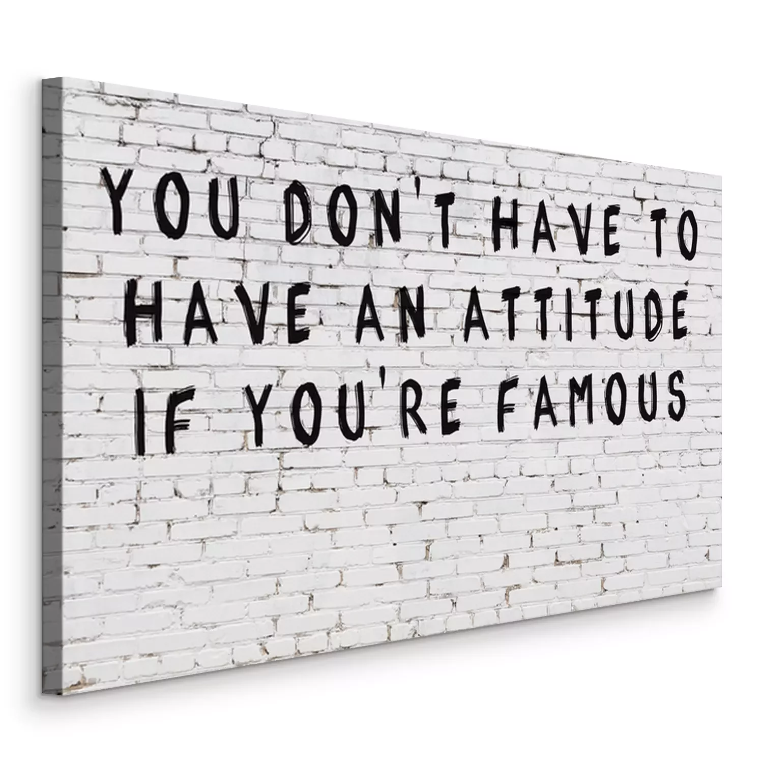 Canvas: White brick wall with painted black inscription of wise quote
