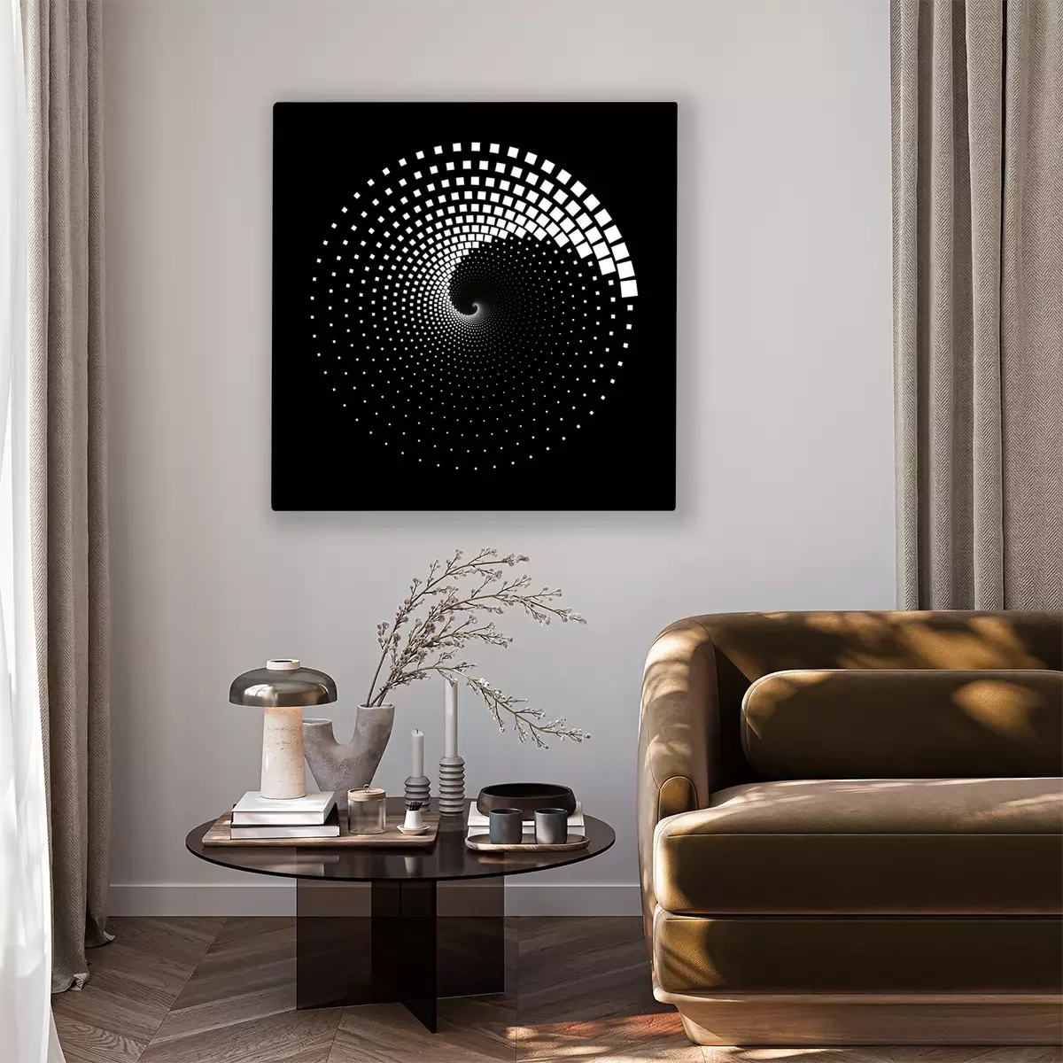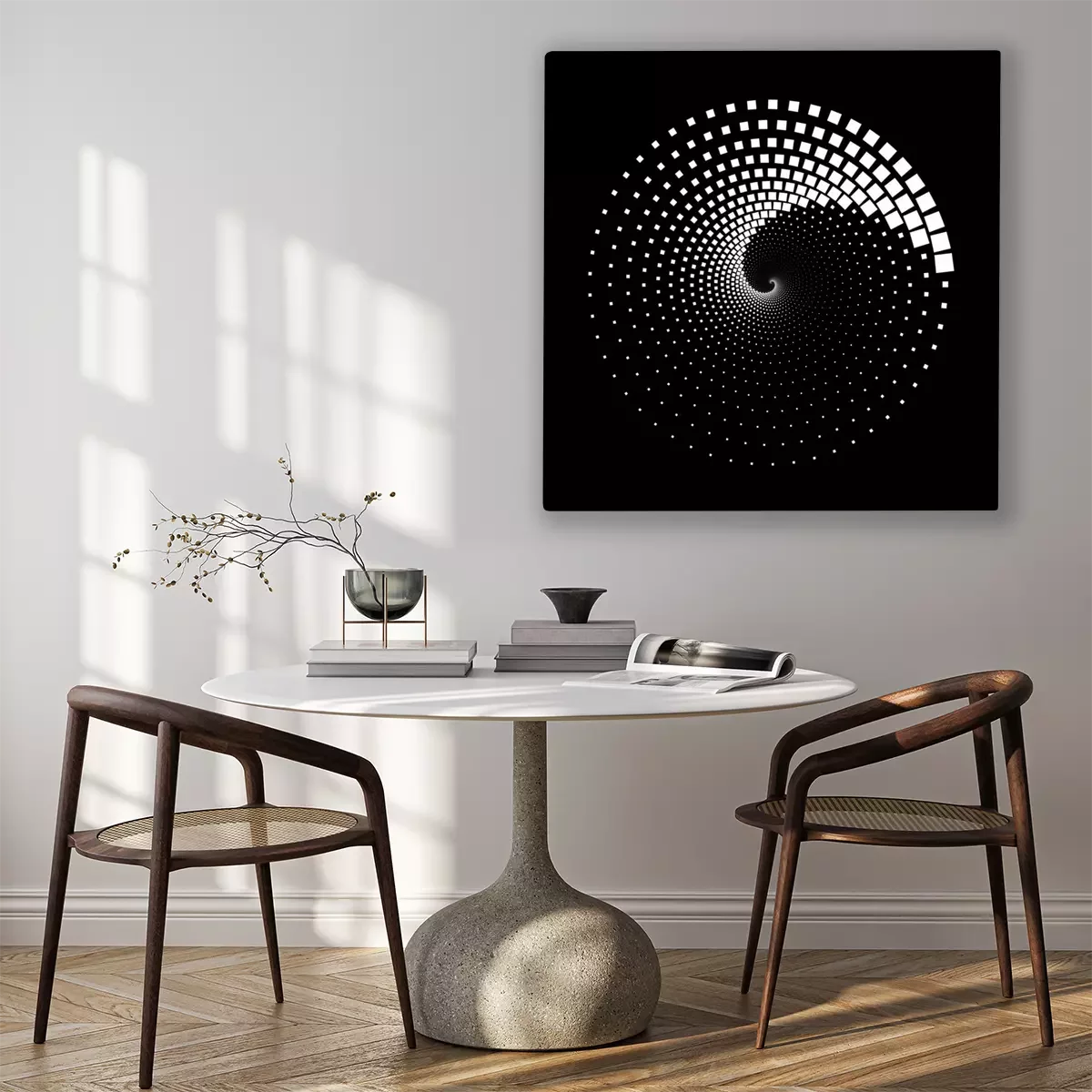 Canvas White square dotted stripes in spiral form. Geometric art. Trendy design element for frame, logo, tattoo, sign, symbol, web, prints, posters, template, pattern and abstract background