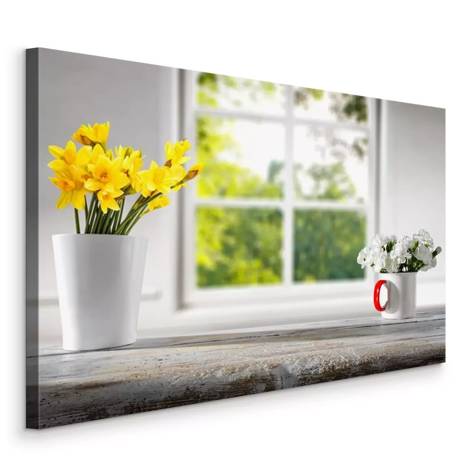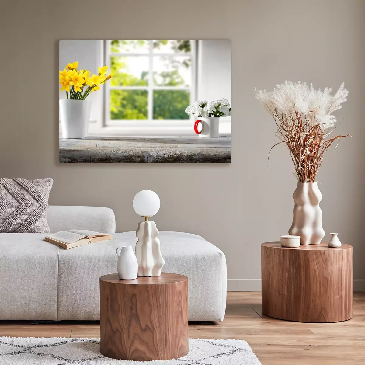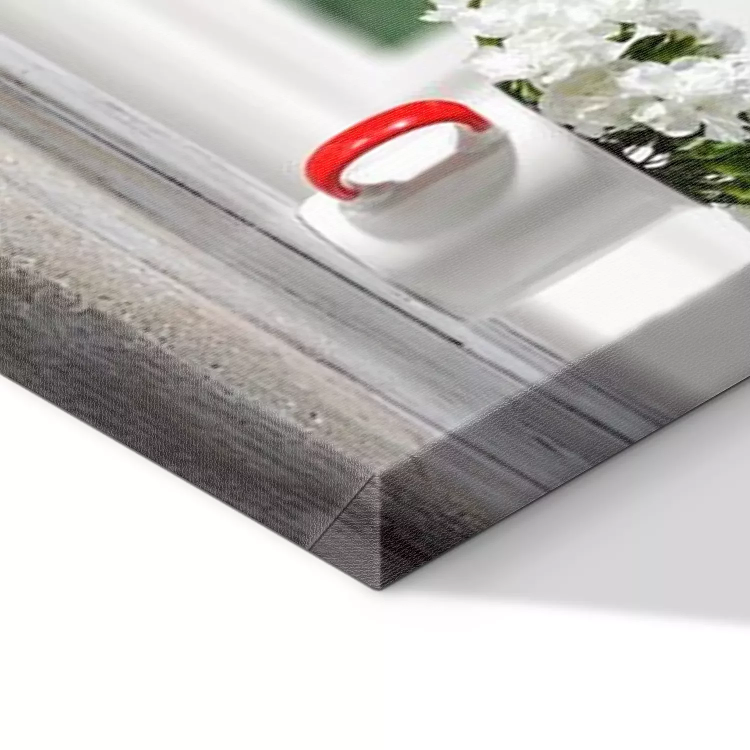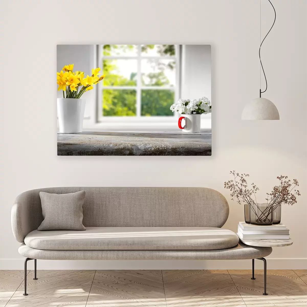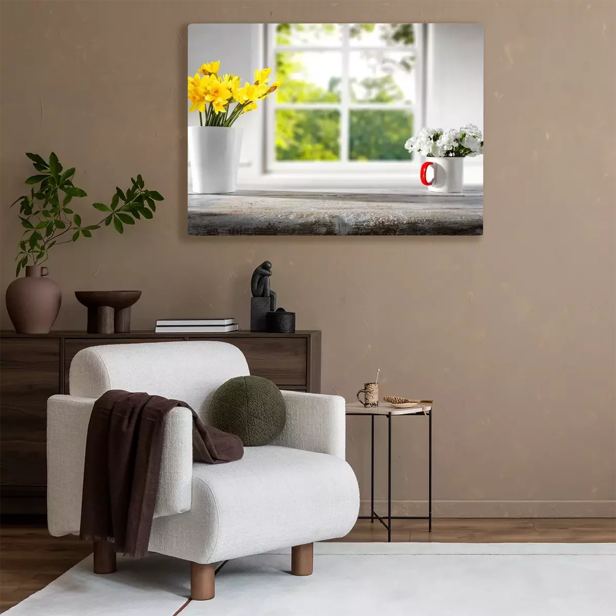 Canvas: white wooden window of spring time and copy space for your products. kitchen interior