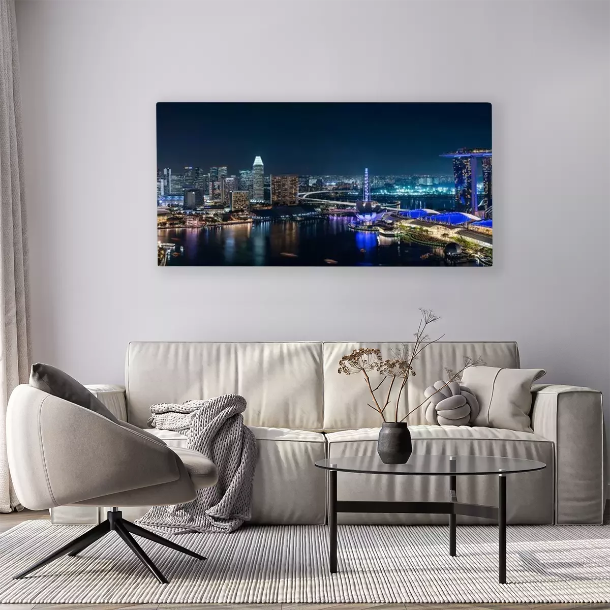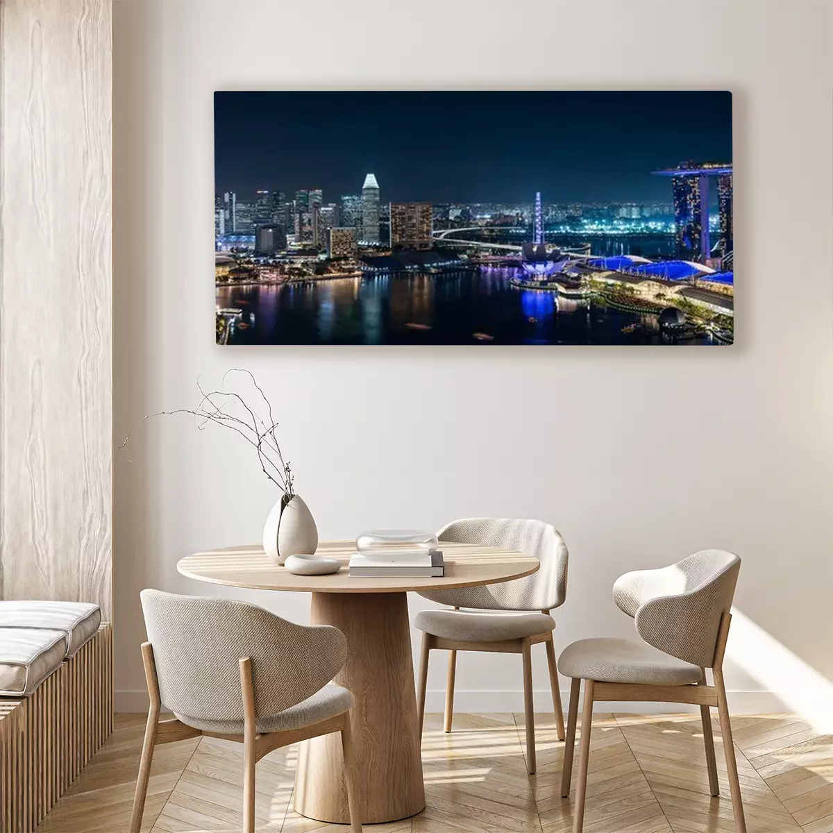 Canvas: Wide panorama of Singapore skyscrapers at night