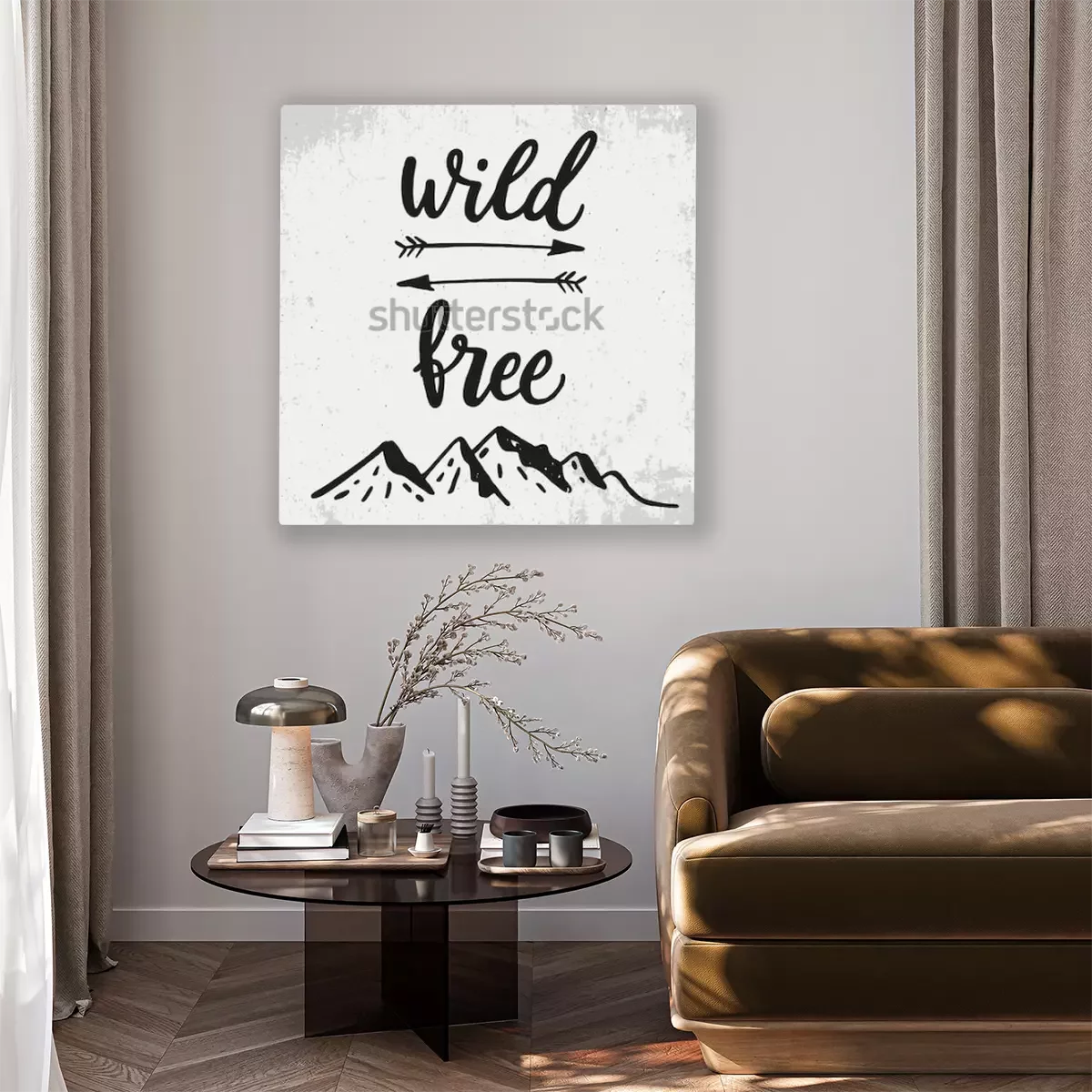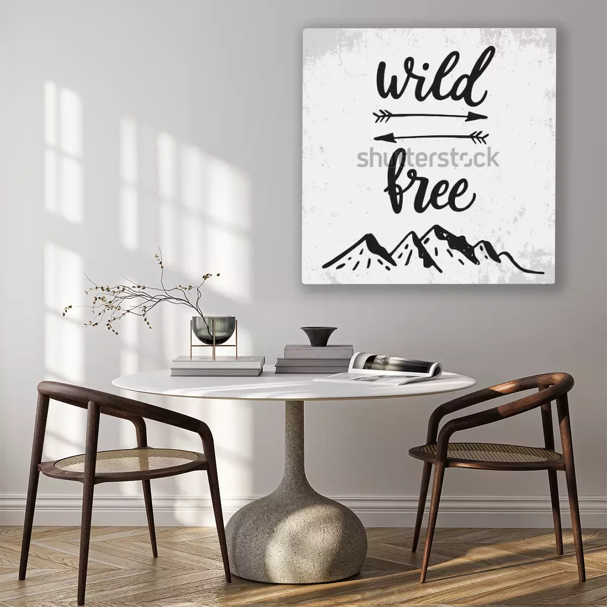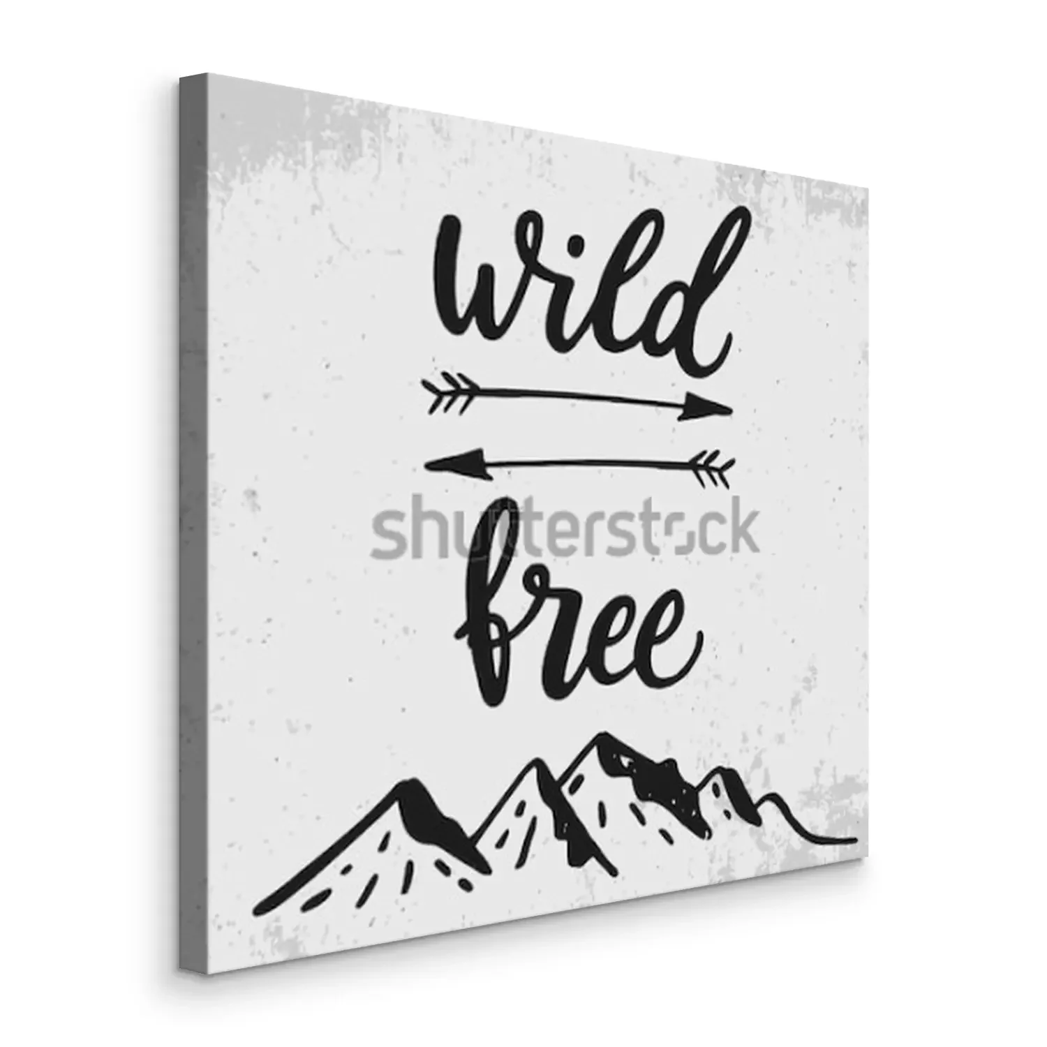 Canvas Wild and free. Life style inspiration quotes lettering. Motivational quote typography with mountains and arrows ink illustrations. Calligraphy graphic design sign element. Vector hand written style.