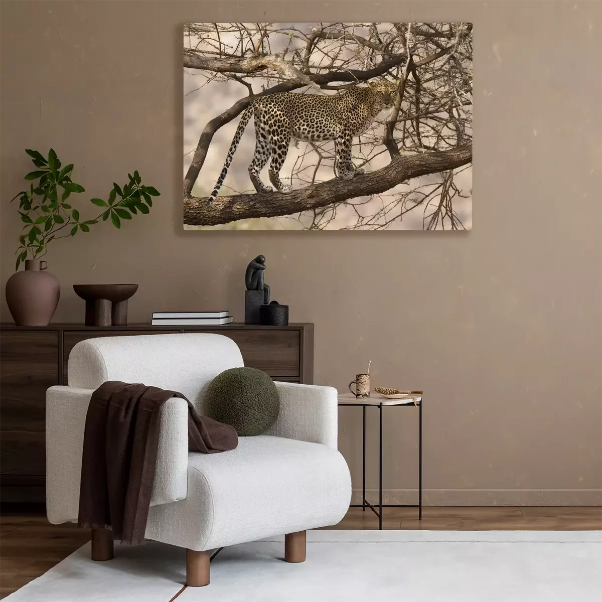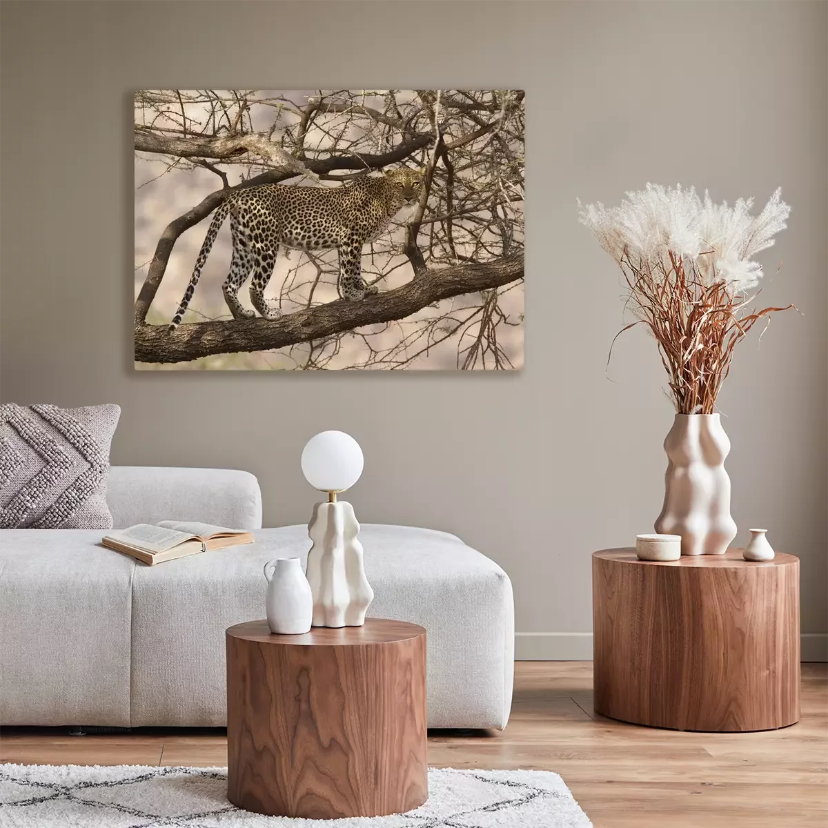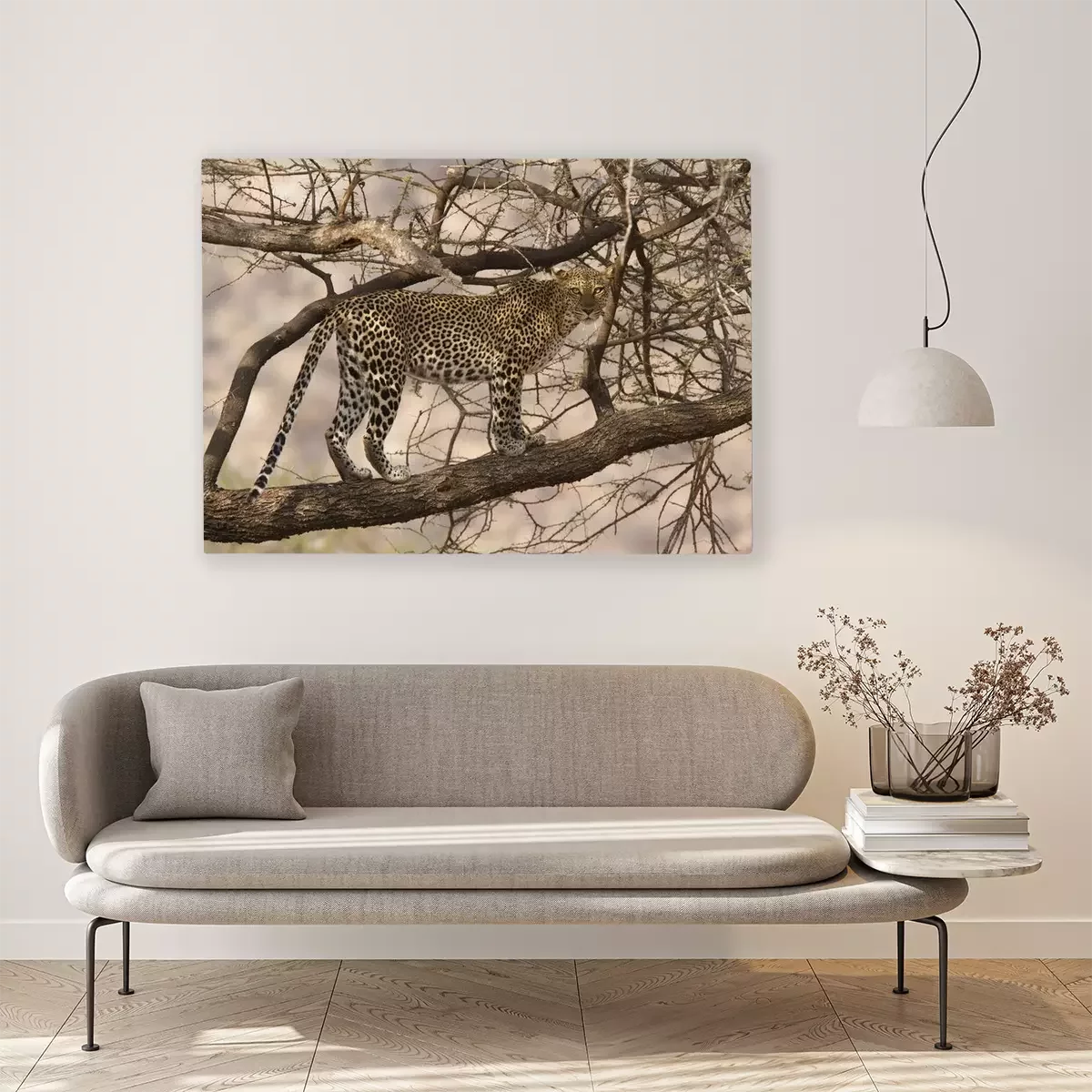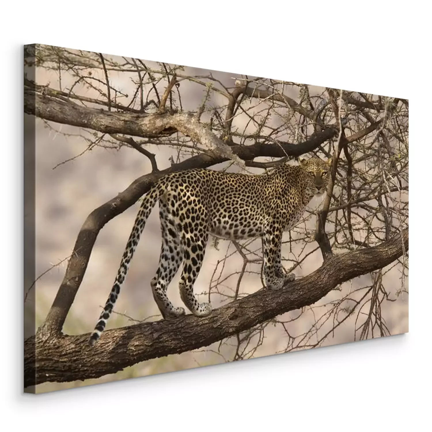 Canvas: Wild luipaard lopen op een boomtak