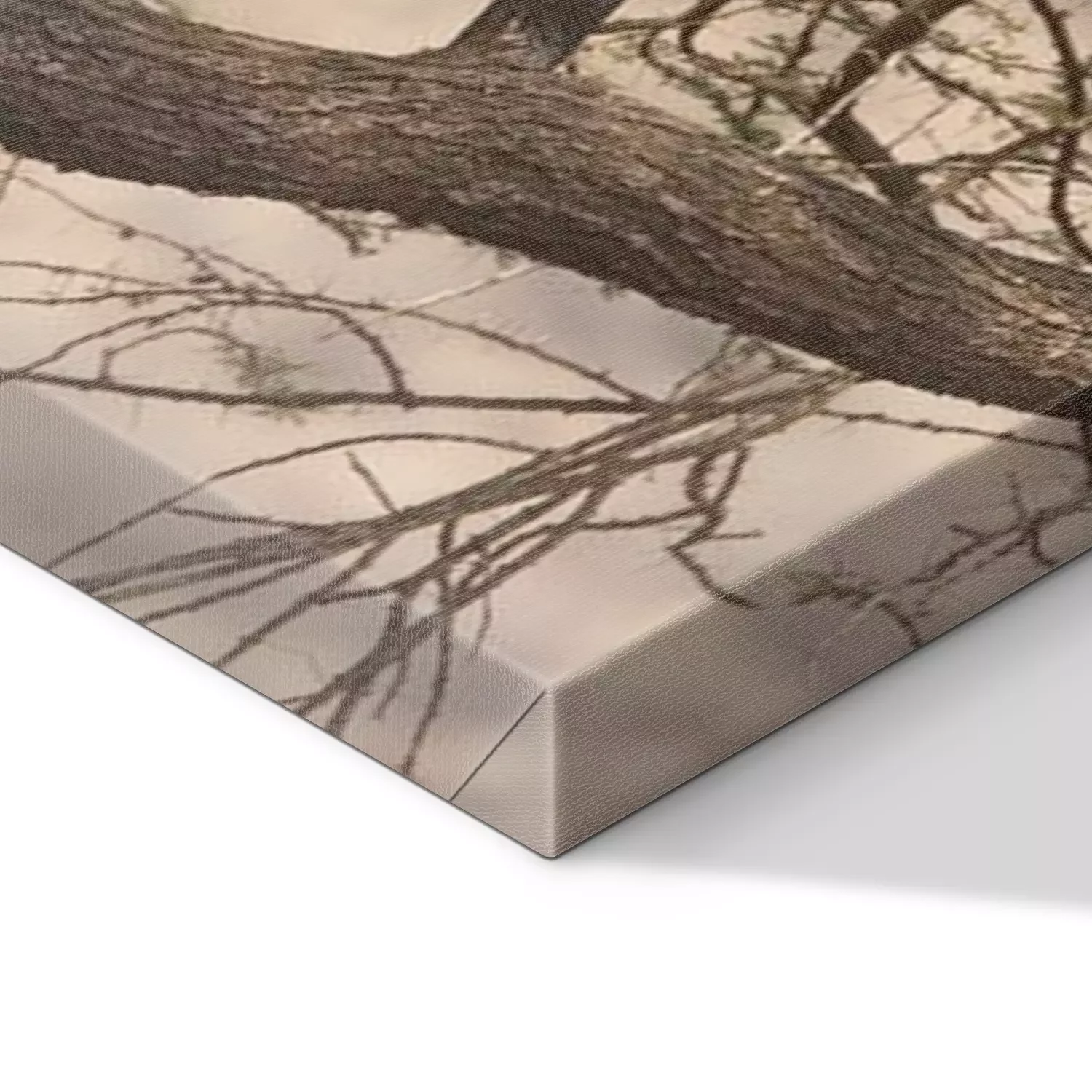 De print wordt aangebracht op hoogwaardig canvas dat op een schildersweefgetouw (spieraam) wordt gespannen. Omdat de print de zijranden bedekt, hoeft het ontwerp niet met een extra kader te worden omlijst. Wij raden ook composities aan die uit meerdere foto's bestaan en zo een coherente compositie vormen.
