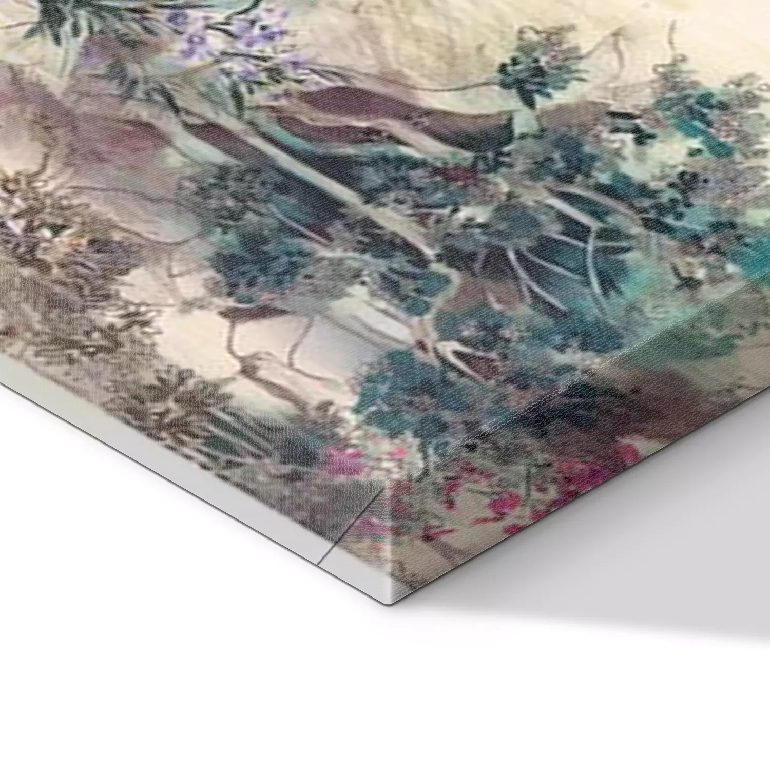 De print wordt aangebracht op hoogwaardig canvas dat op een schildersweefgetouw (spieraam) wordt gespannen. Omdat de print de zijranden bedekt, hoeft het ontwerp niet met een extra kader te worden omlijst. Wij raden ook composities aan die uit meerdere foto's bestaan en zo een coherente compositie vormen.