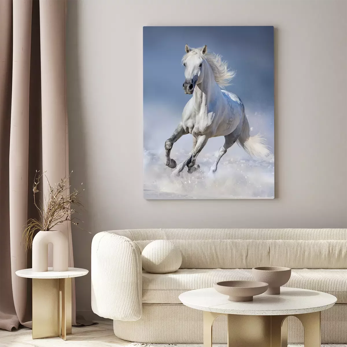De print wordt aangebracht op hoogwaardig canvas dat op een schildersweefgetouw (spieraam) wordt gespannen. Omdat de print de zijranden bedekt, hoeft het ontwerp niet met een extra kader te worden omlijst. Wij raden ook composities aan die uit meerdere foto's bestaan en zo een coherente compositie vormen.