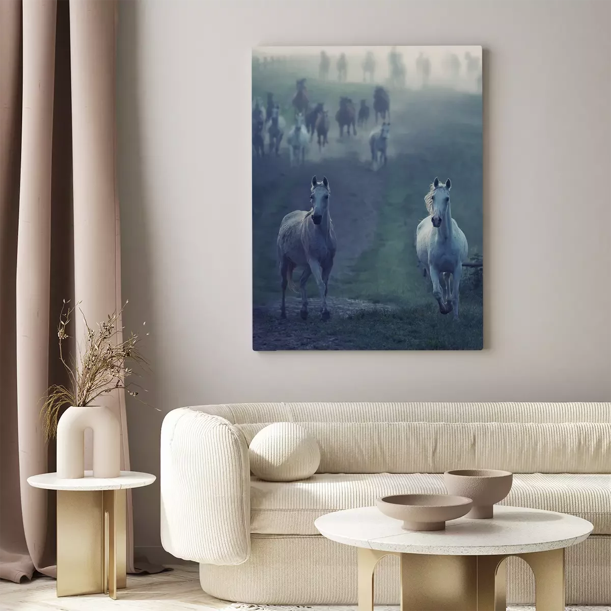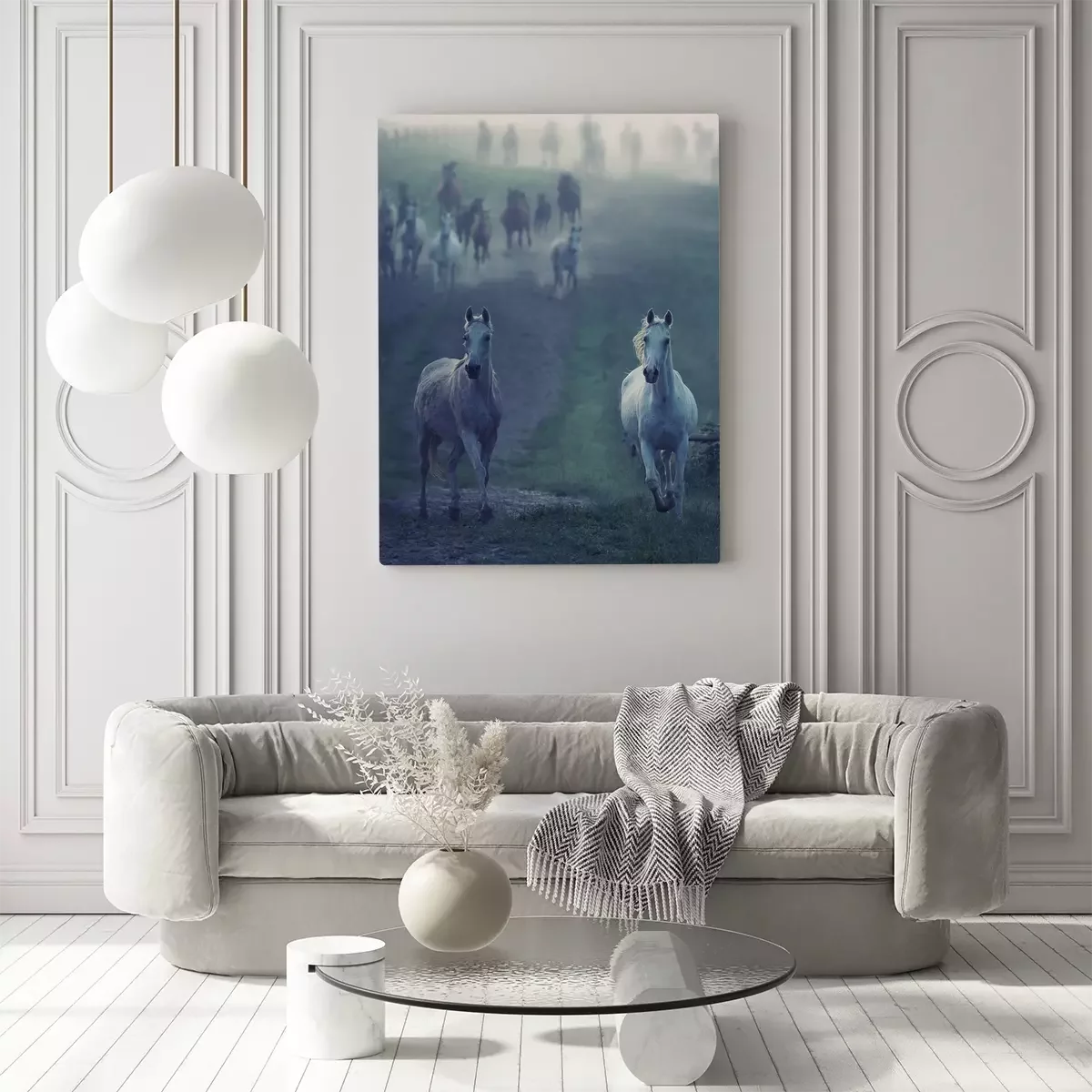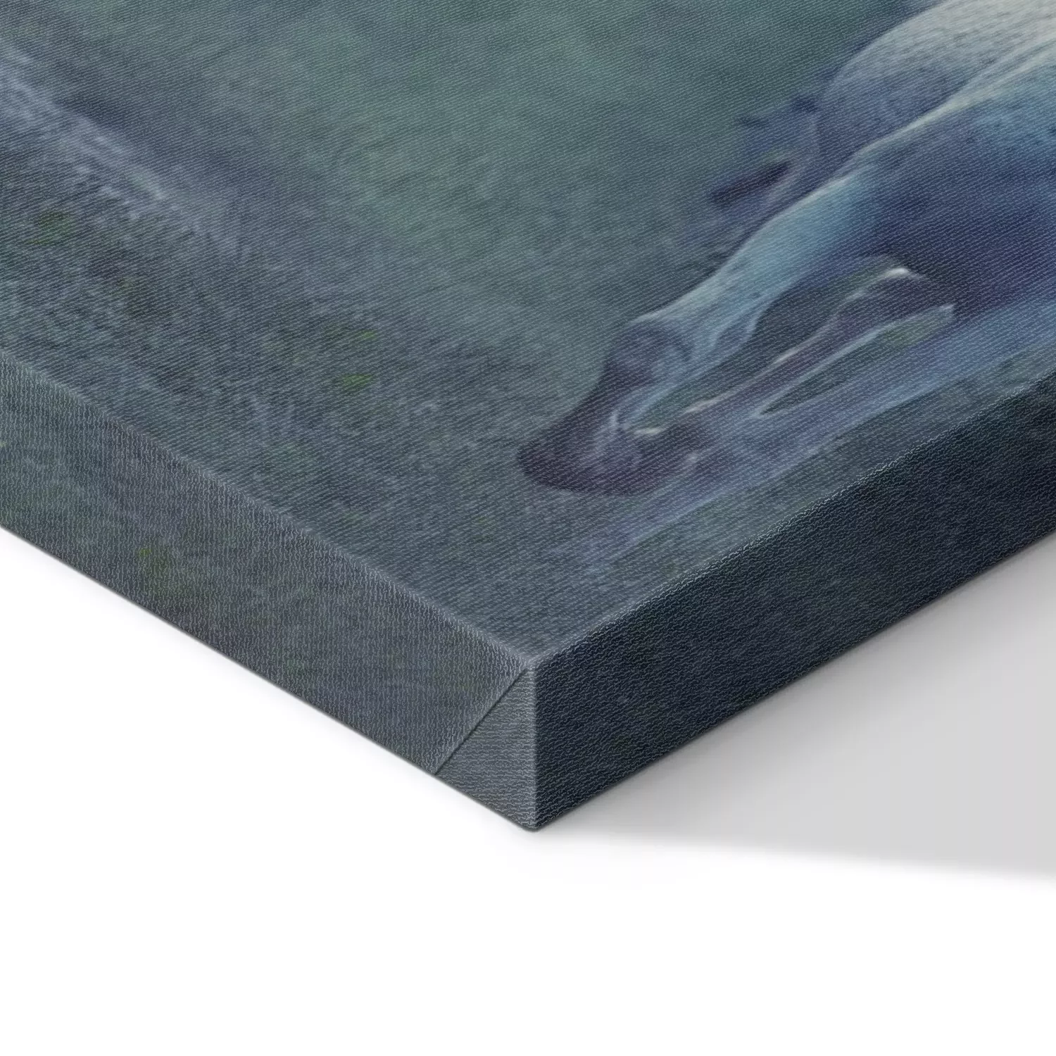De print wordt aangebracht op hoogwaardig canvas dat op een schildersweefgetouw (spieraam) wordt gespannen. Omdat de print de zijranden bedekt, hoeft het ontwerp niet met een extra kader te worden omlijst. Wij raden ook composities aan die uit meerdere foto's bestaan en zo een coherente compositie vormen.