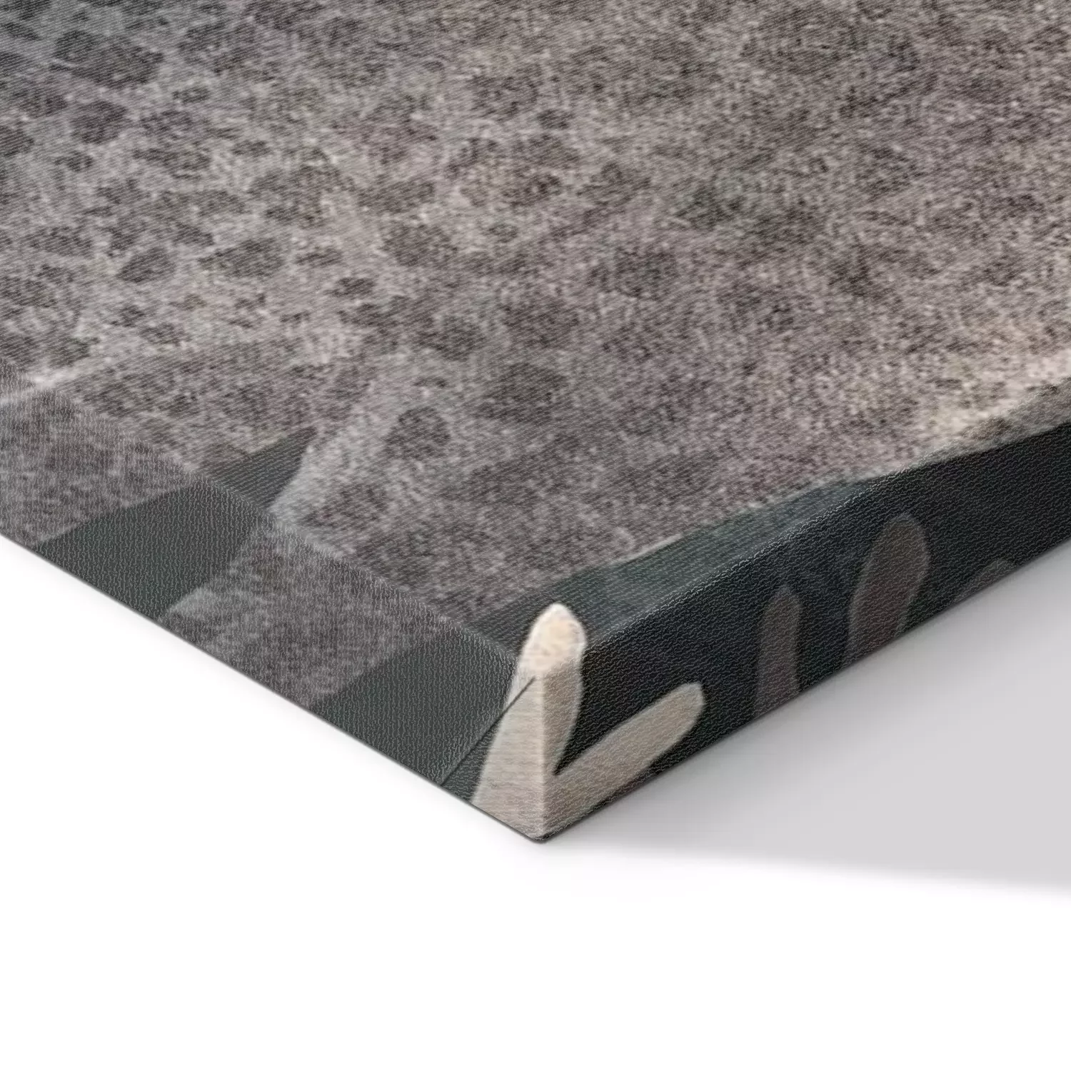 De print wordt aangebracht op hoogwaardig canvas dat op een schildersweefgetouw (spieraam) wordt gespannen. Omdat de print de zijranden bedekt, hoeft het ontwerp niet met een extra kader te worden omlijst. Wij raden ook composities aan die uit meerdere foto's bestaan en zo een coherente compositie vormen.