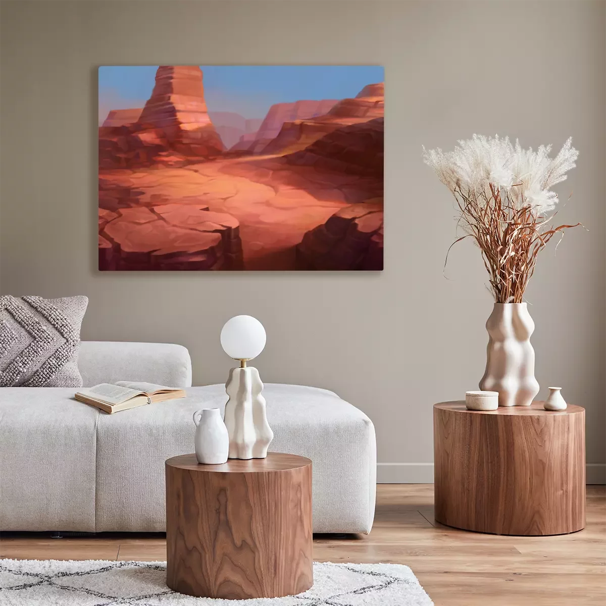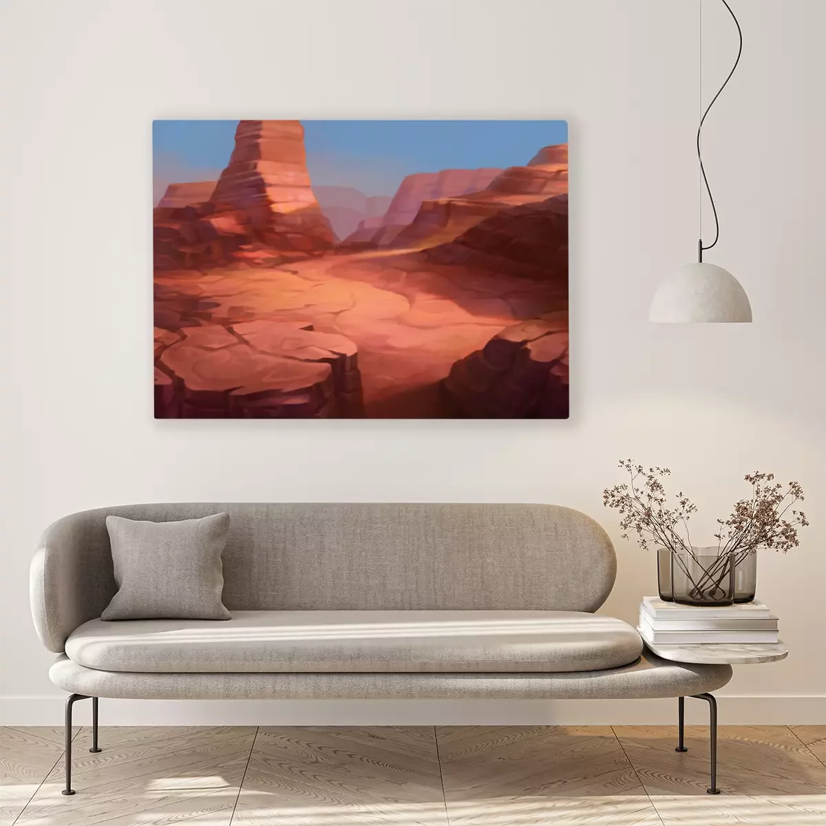 De print wordt aangebracht op hoogwaardig canvas dat op een schildersweefgetouw (spieraam) wordt gespannen. Omdat de print de zijranden bedekt, hoeft het ontwerp niet met een extra kader te worden omlijst. Wij raden ook composities aan die uit meerdere foto's bestaan en zo een coherente compositie vormen.