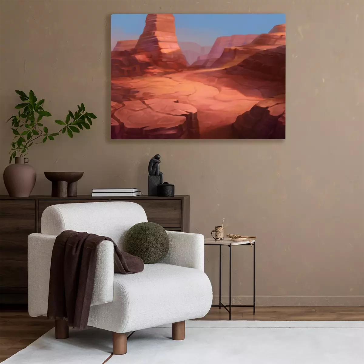 Canvas: Wilde westen Texas woestijnlandschap met bergen van de canyon. Realistische cartoonstijl voor game-art en animatie.
