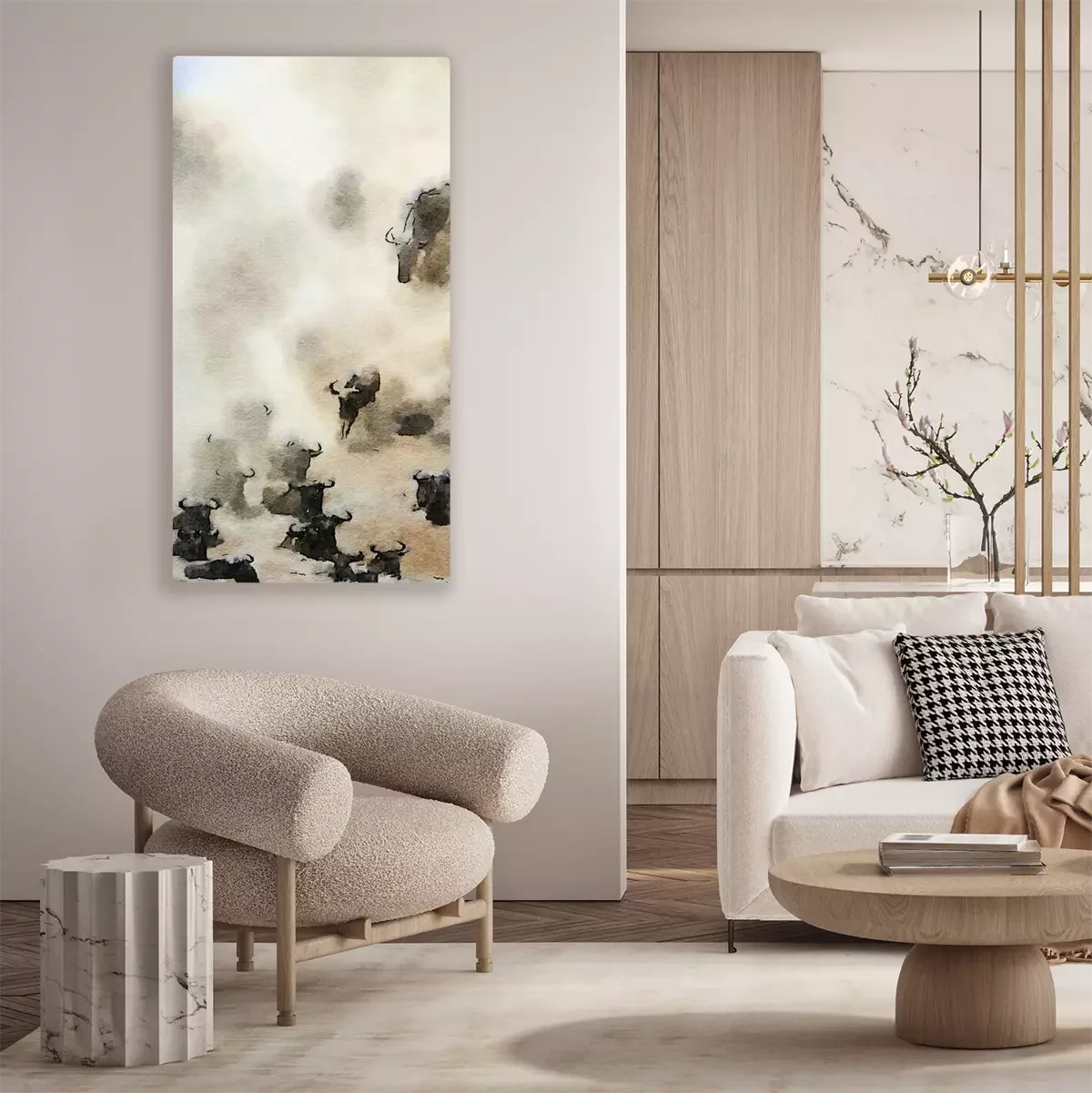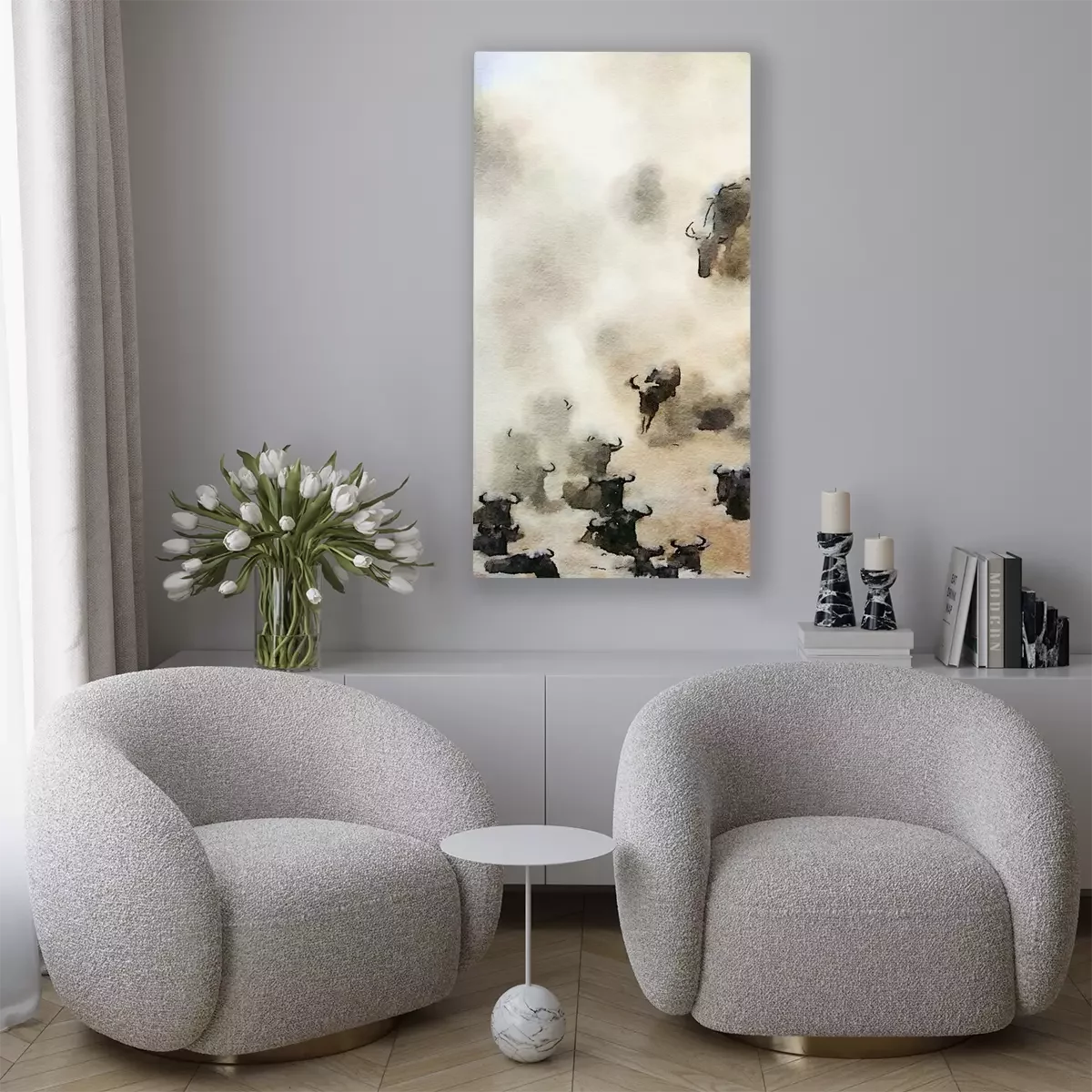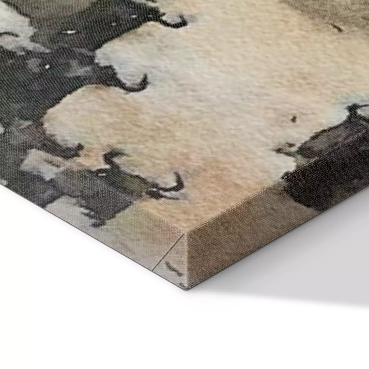 De print wordt aangebracht op hoogwaardig canvas dat op een schildersweefgetouw (spieraam) wordt gespannen. Omdat de print de zijranden bedekt, hoeft het ontwerp niet met een extra kader te worden omlijst. Wij raden ook composities aan die uit meerdere foto's bestaan en zo een coherente compositie vormen.